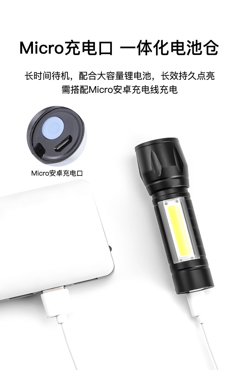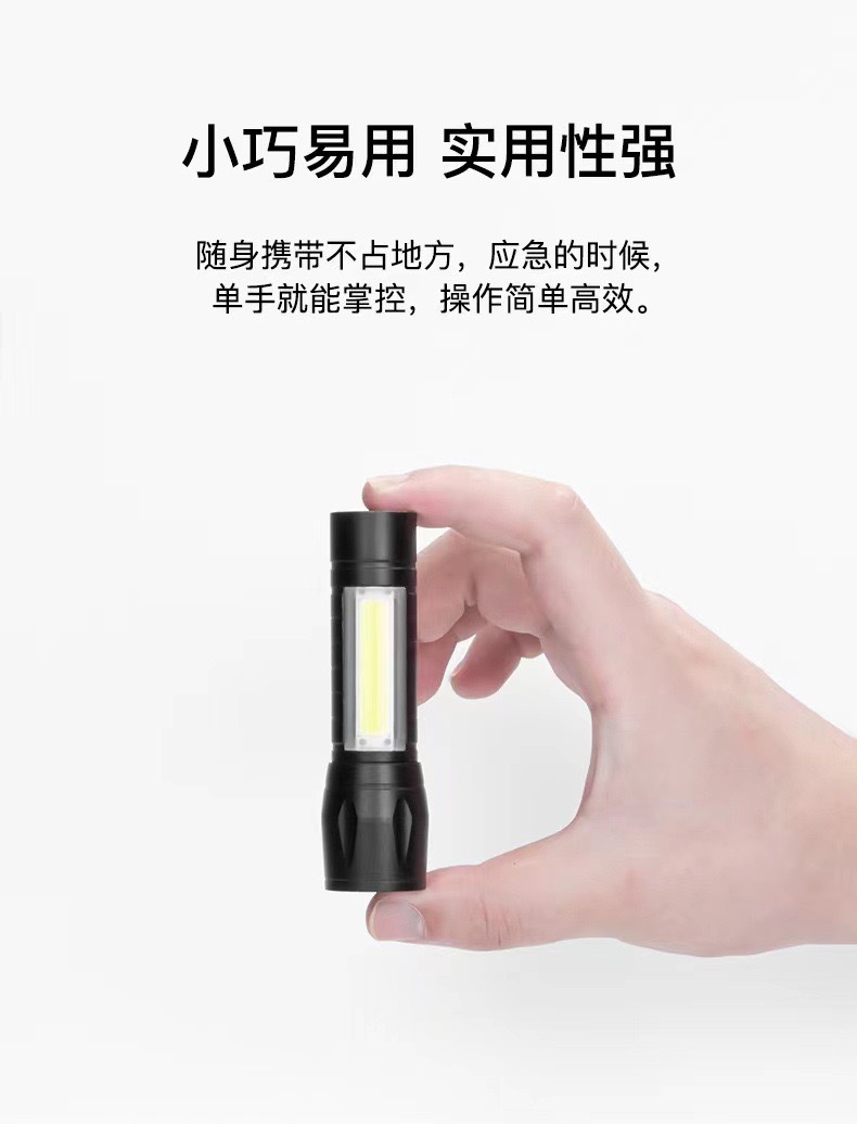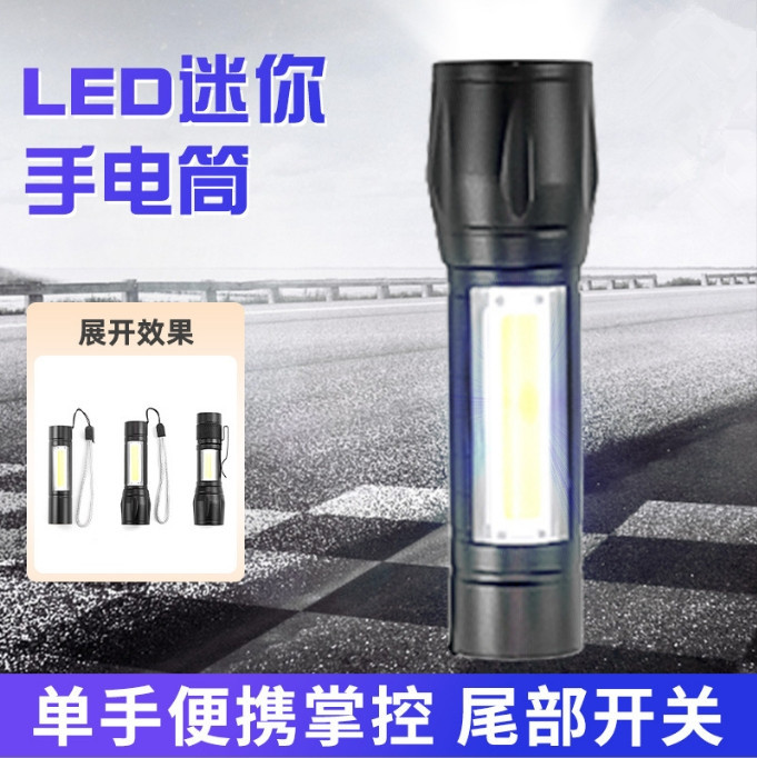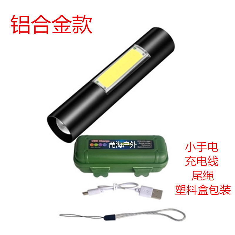 야외 조명 COB 사이드 라이트 핸드 헬드 작은 손전등 led 홈 미니 캠핑 텔레스코픽 초점 알루미늄 합금스토어 가기