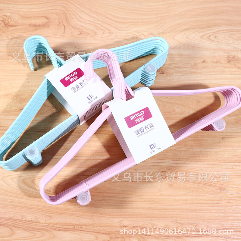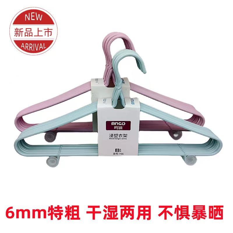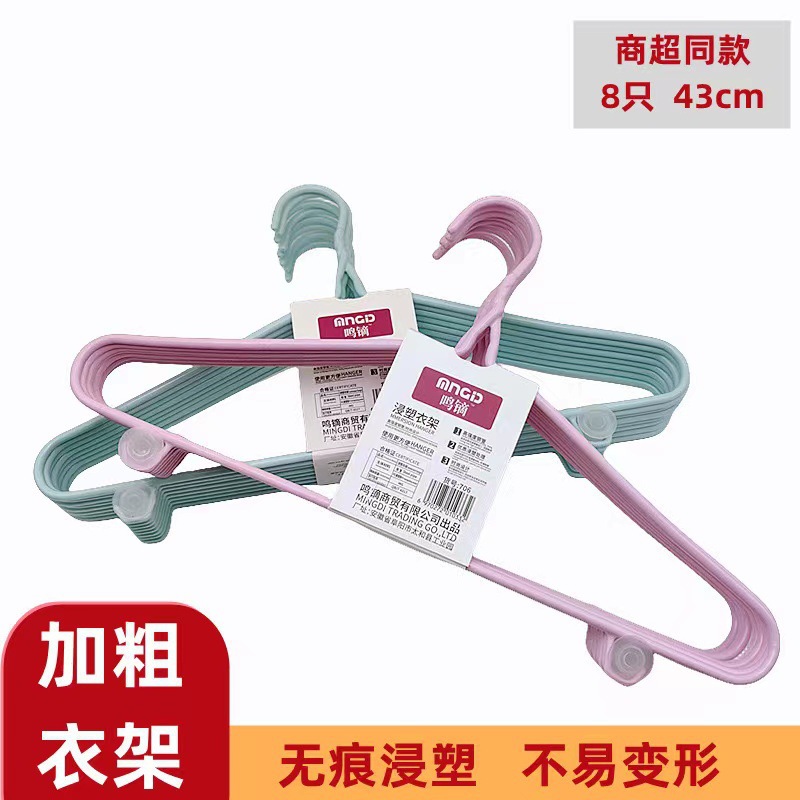 6mm 여분의 두꺼운 8 개의 플라스틱 함침 옷걸이 부티크 46CM 가정용 금속 의류 성인 미끄럼 방지 옷걸이 승인스토어 가기