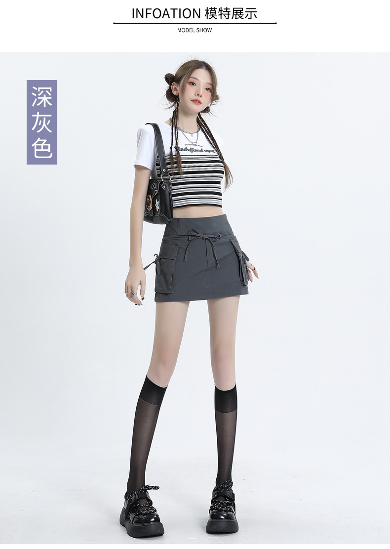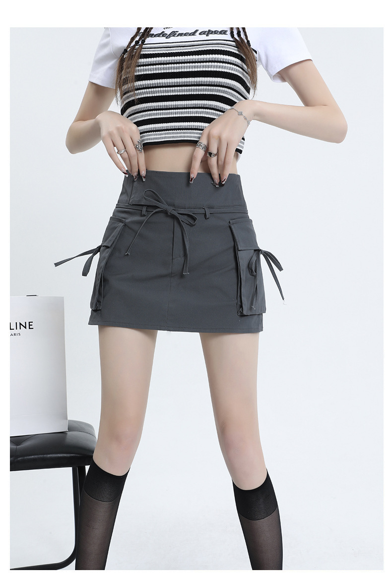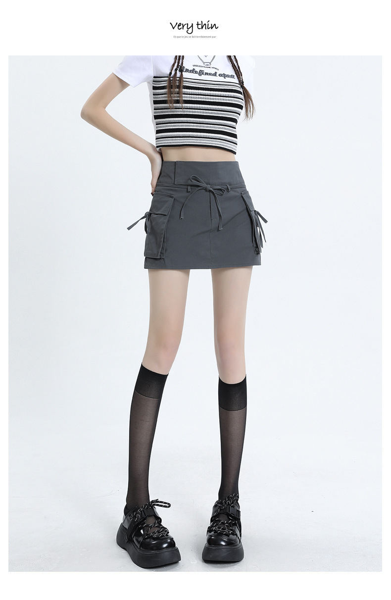 여성을위한 작업복 하이 웨이스트 슬림 스커트 2025 봄 여름 새로운 디자인 핫 소녀 벨트 드로스트링 a 라인 힙 스커트스토어 가기
