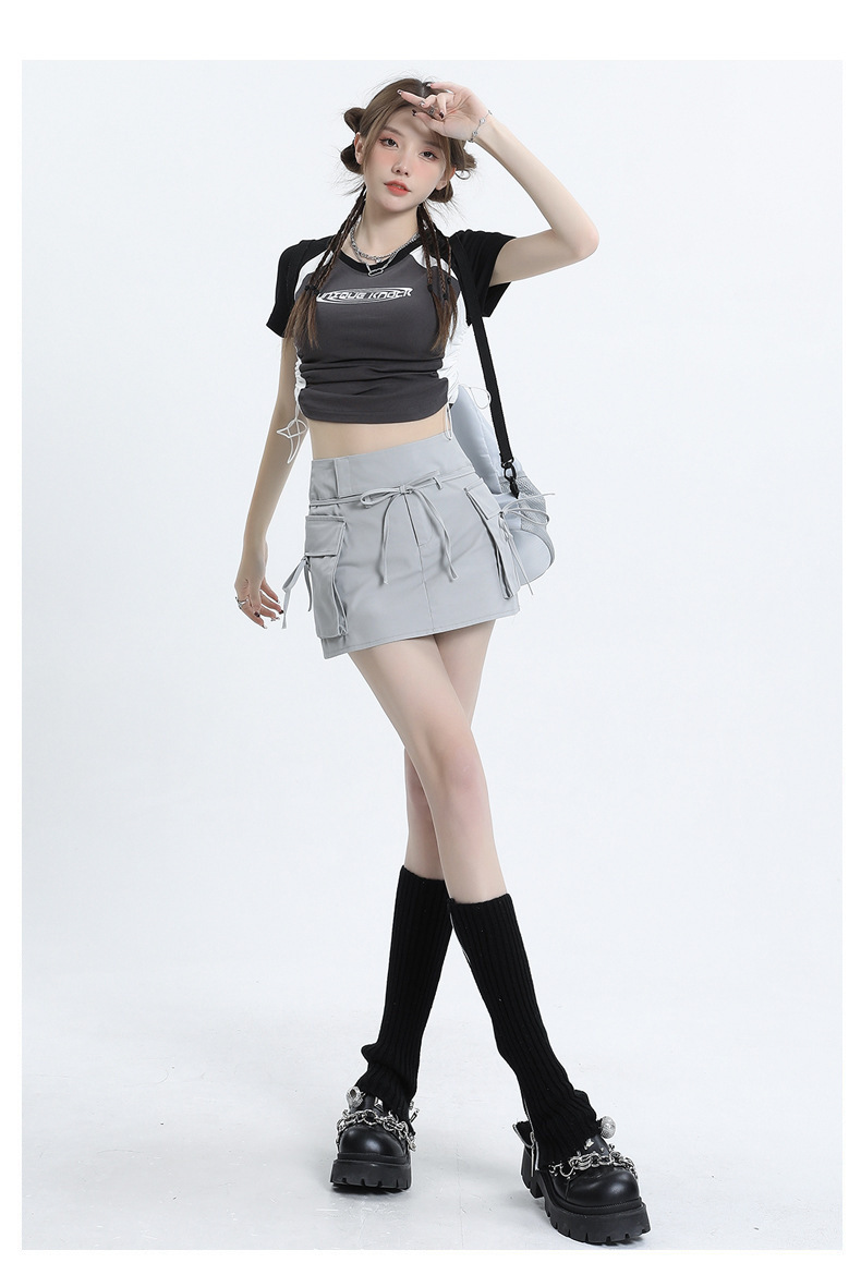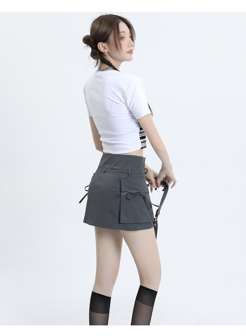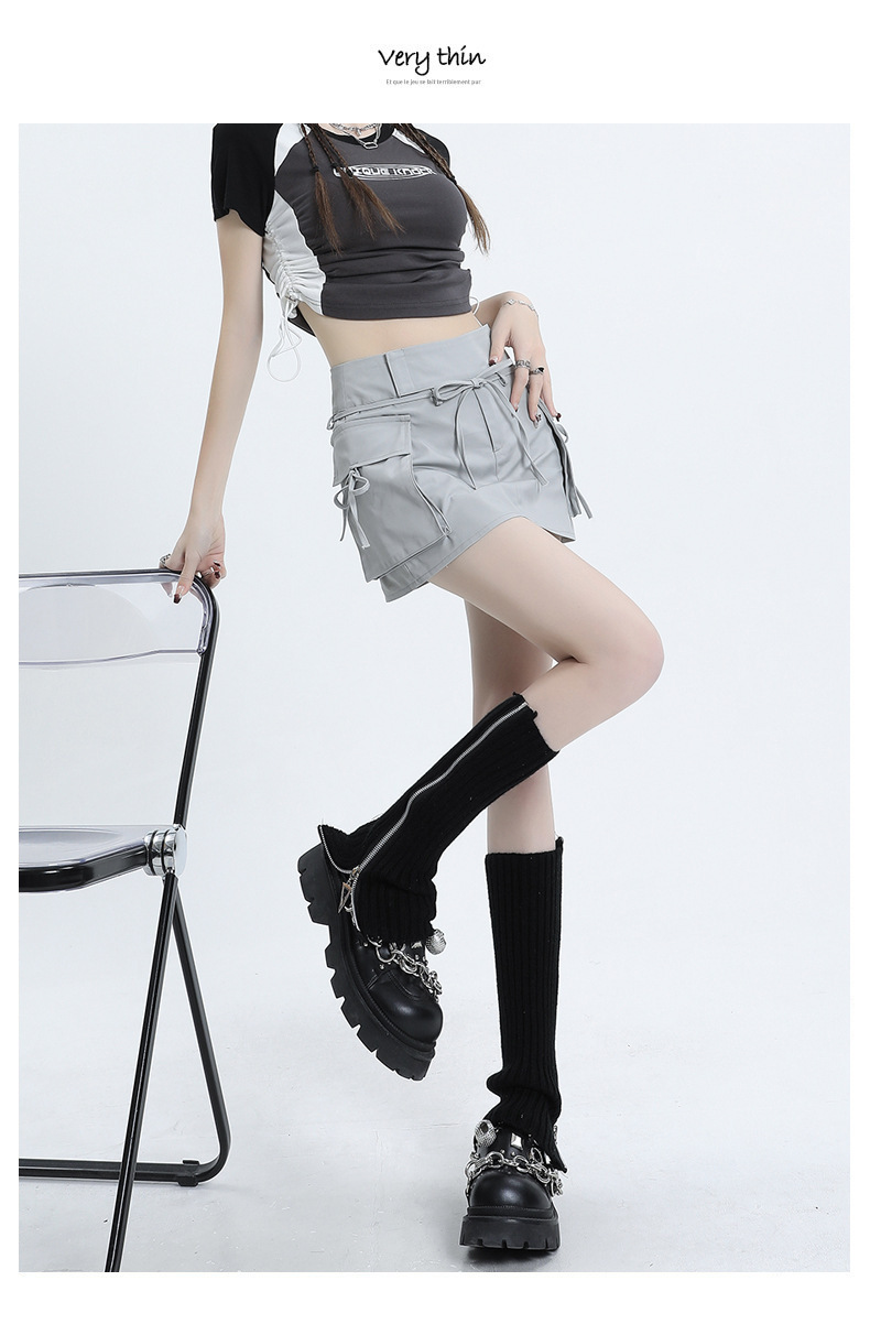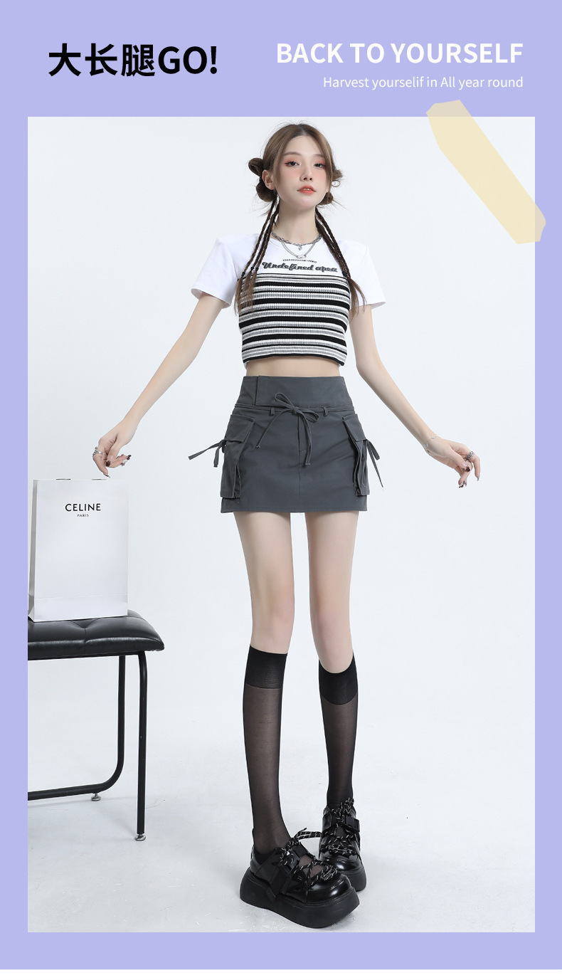 여성을위한 작업복 하이 웨이스트 슬림 스커트 2025 봄 여름 새로운 디자인 핫 소녀 벨트 드로스트링 a 라인 힙 스커트스토어 가기