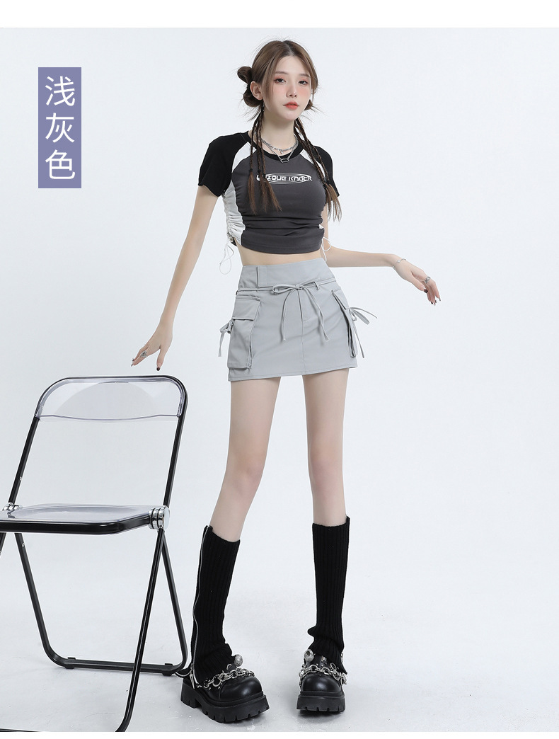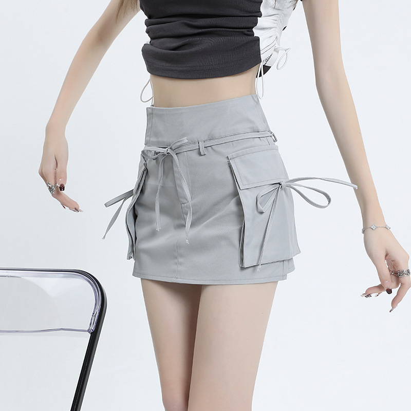 여성을위한 작업복 하이 웨이스트 슬림 스커트 2025 봄 여름 새로운 디자인 핫 소녀 벨트 드로스트링 a 라인 힙 스커트