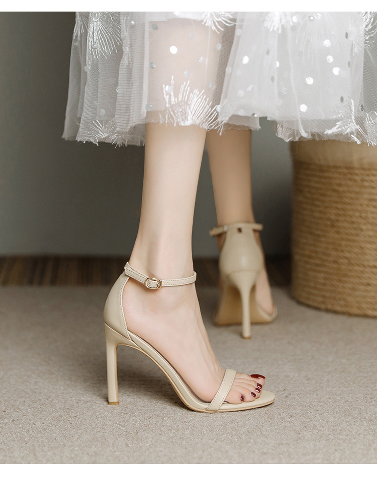 우아한 키가 큰 간단한 버클 샌들 2024 새로운 여름 여성을위한 우아한 섹시한 하이힐 오픈 발가락 샌들스토어 가기