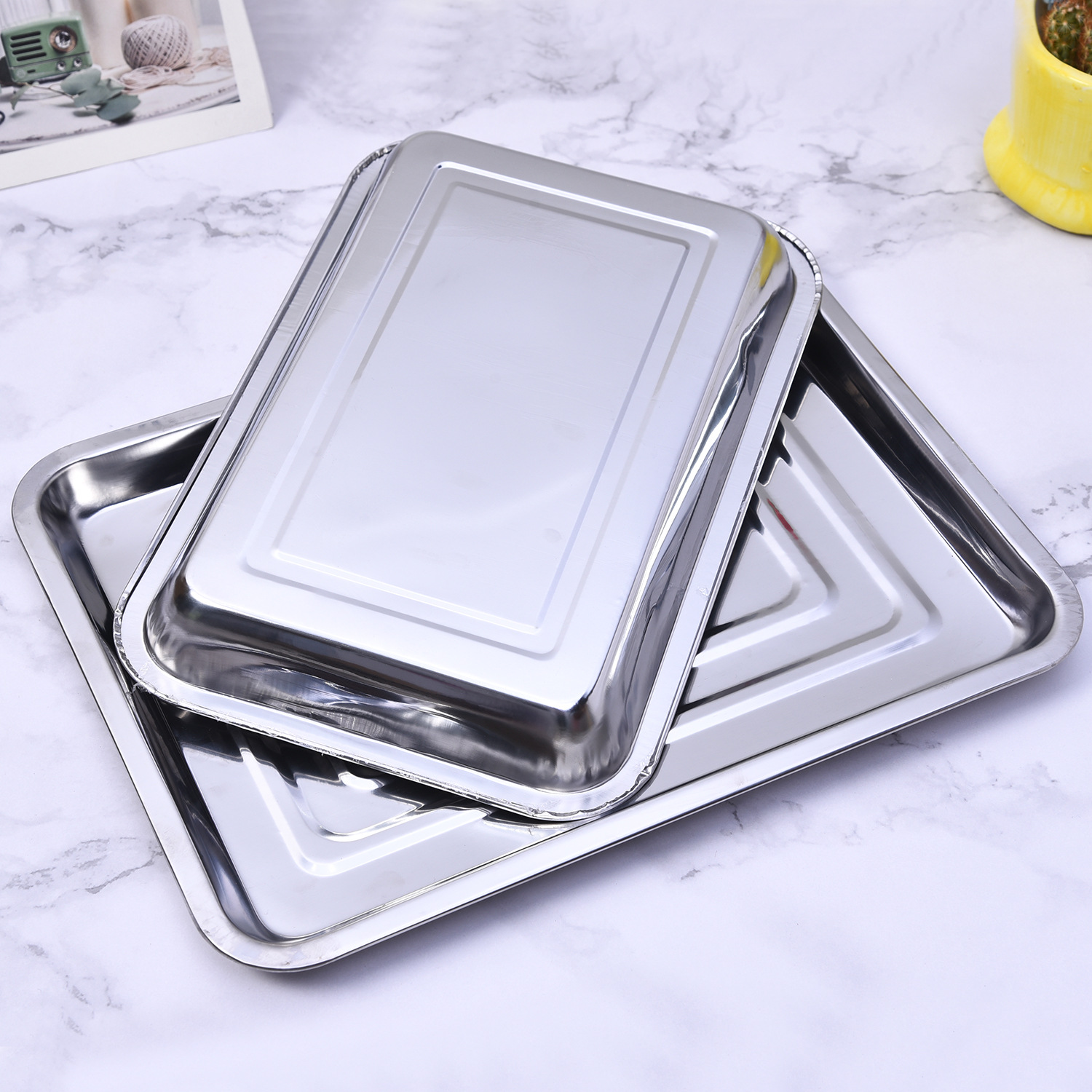 스테인레스 스틸 트레이 직사각형 멀티 사이즈 스퀘어 트레이 가정용 트레이 플레이트 디너 플레이트 바베큐 용품 상업용 접시