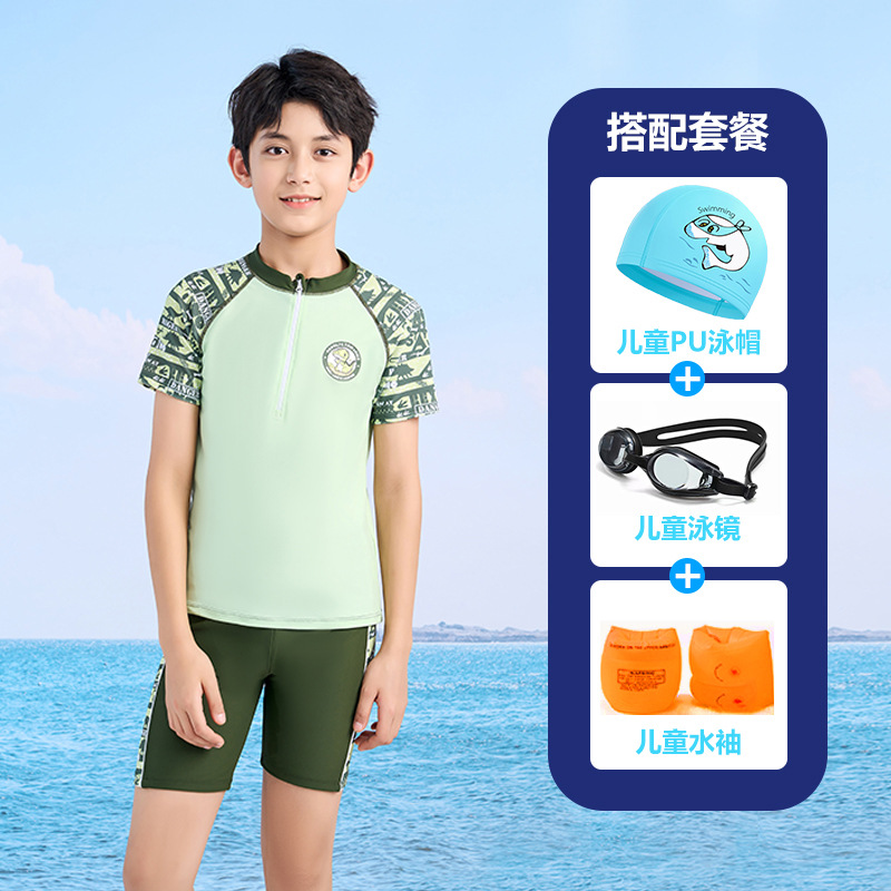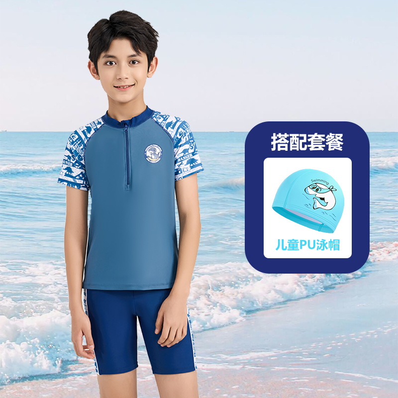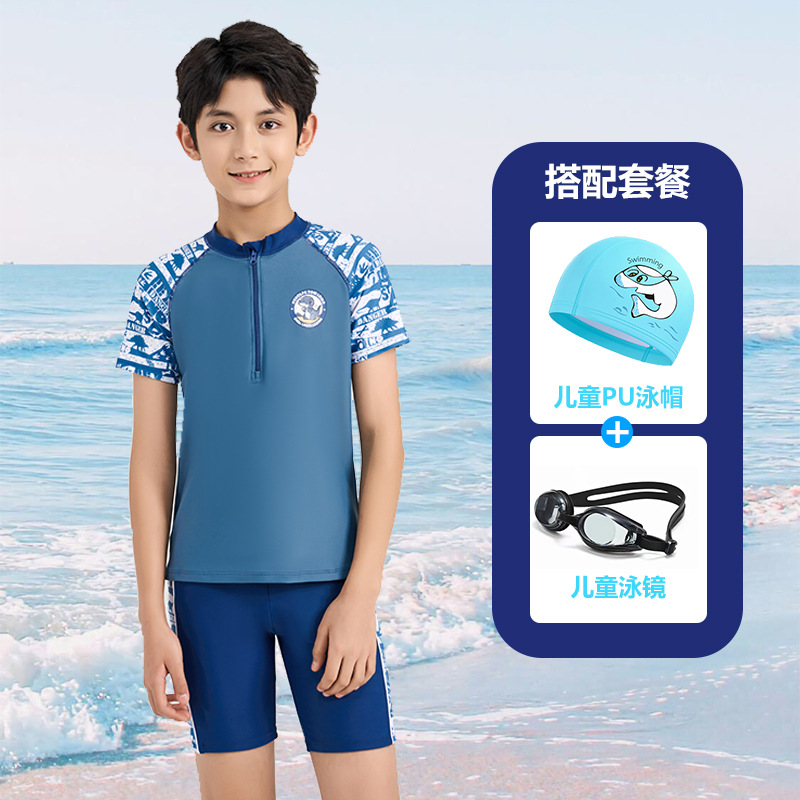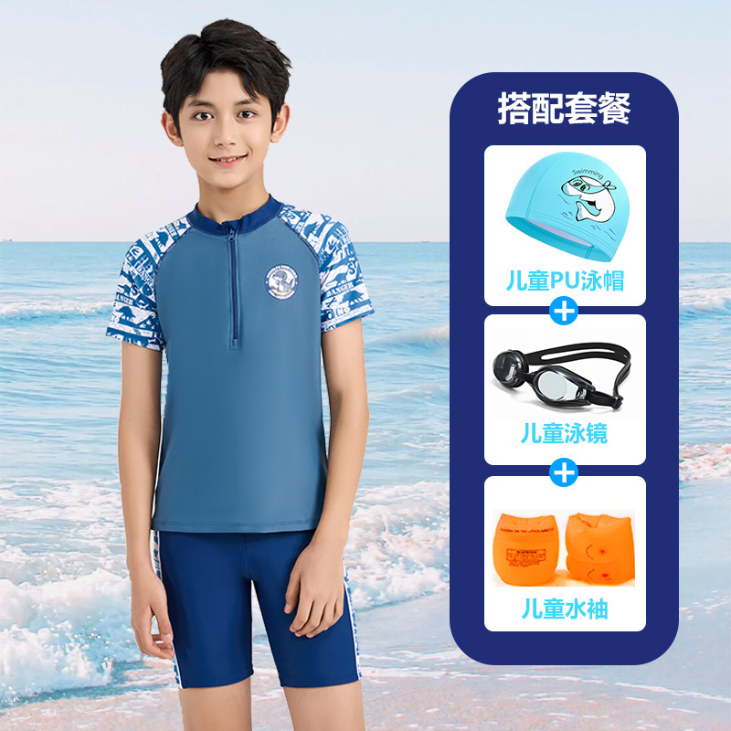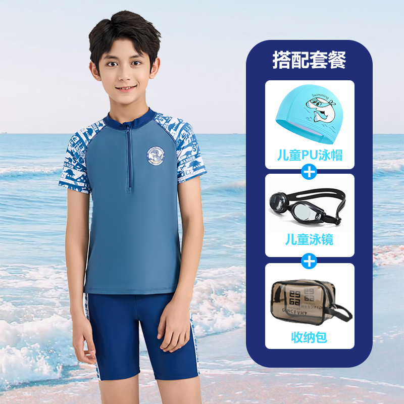 어린이 수영복 소년 작은 중 · 대형 어린이 2024 새 소년 분할 지퍼 수영복 전문 수영 트렁크 세트