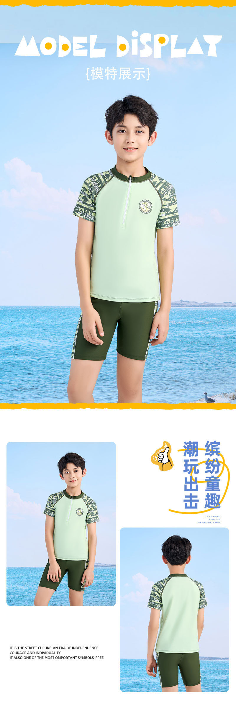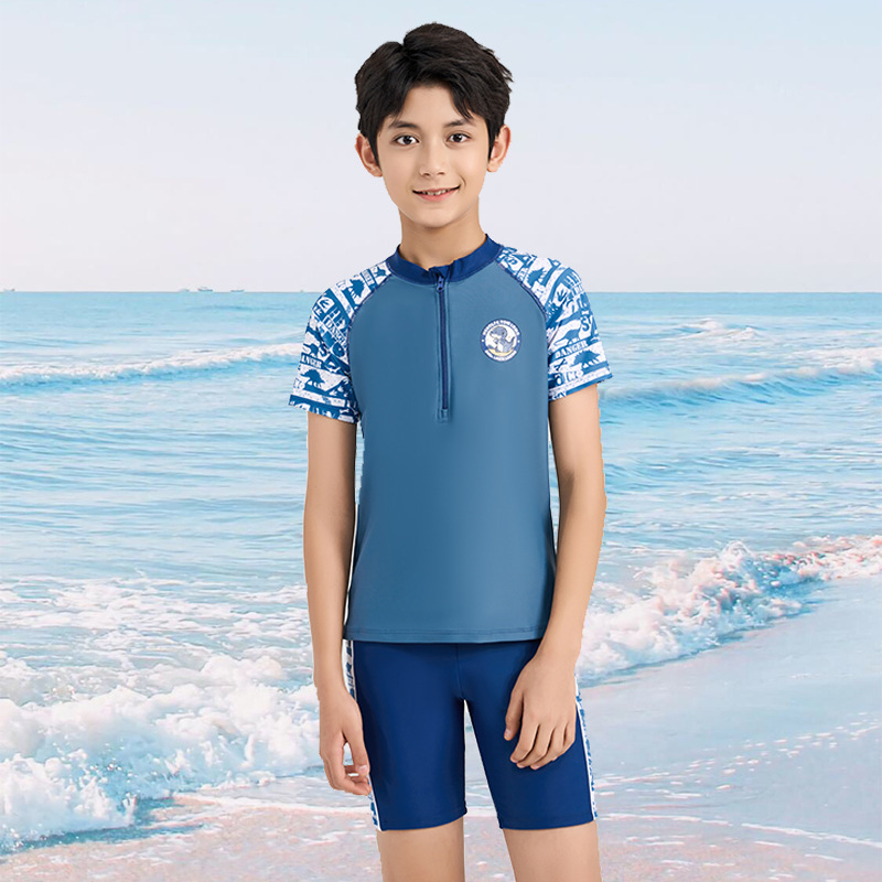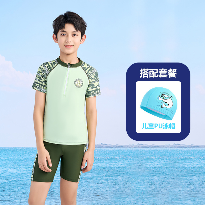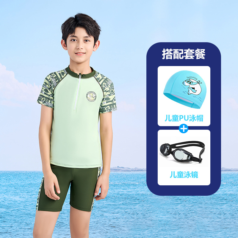 어린이 수영복 소년 작은 중 · 대형 어린이 2024 새 소년 분할 지퍼 수영복 전문 수영 트렁크 세트
