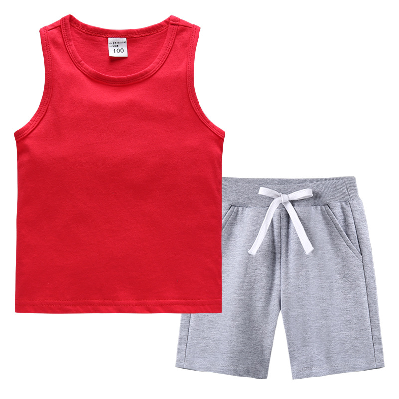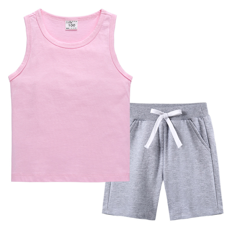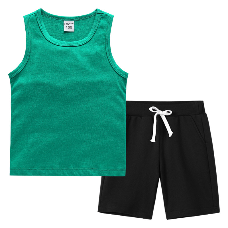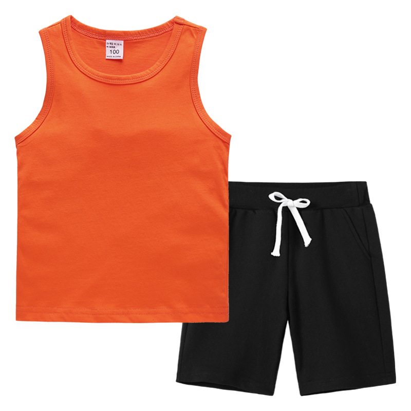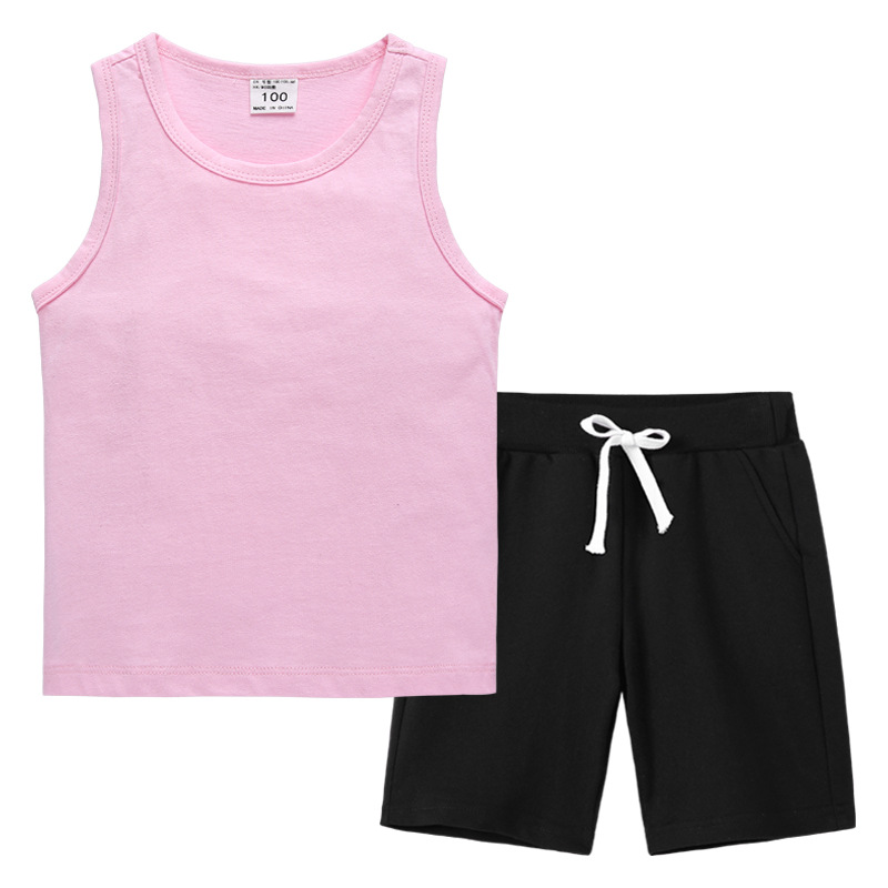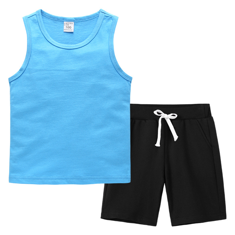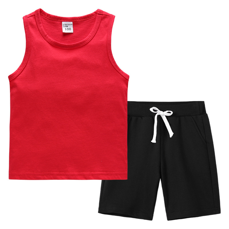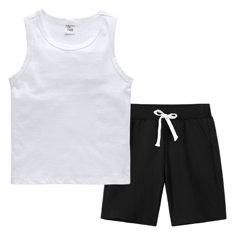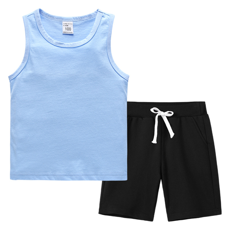 2023 년 어린이 여름 조끼 바지 스포츠 캐주얼베이스 셔츠 외부 착용 소형 및 중형 어린이를위한 얇은 민소매 투피스 세트