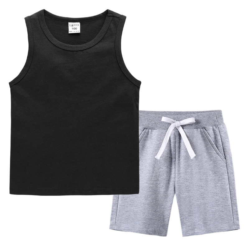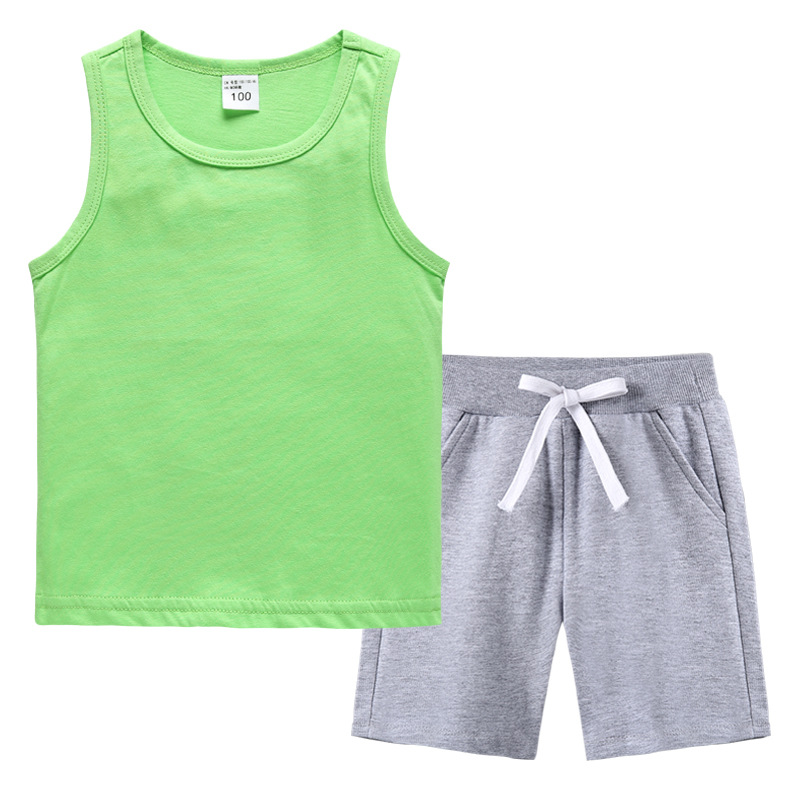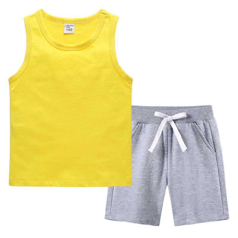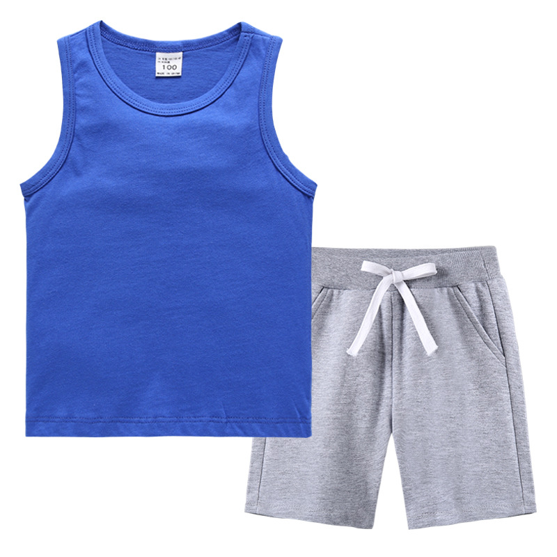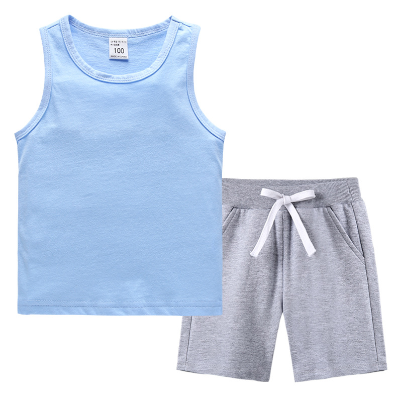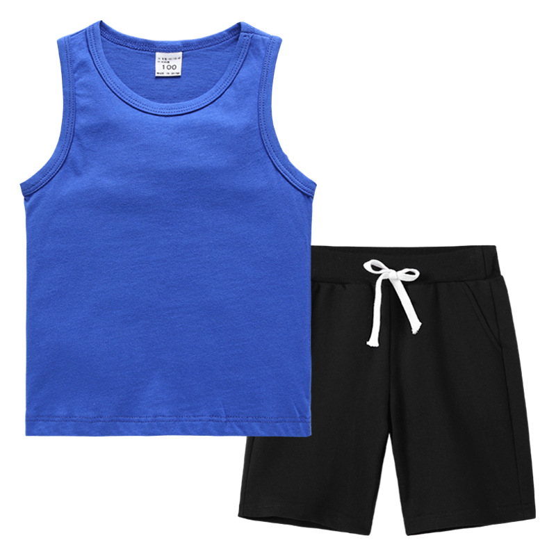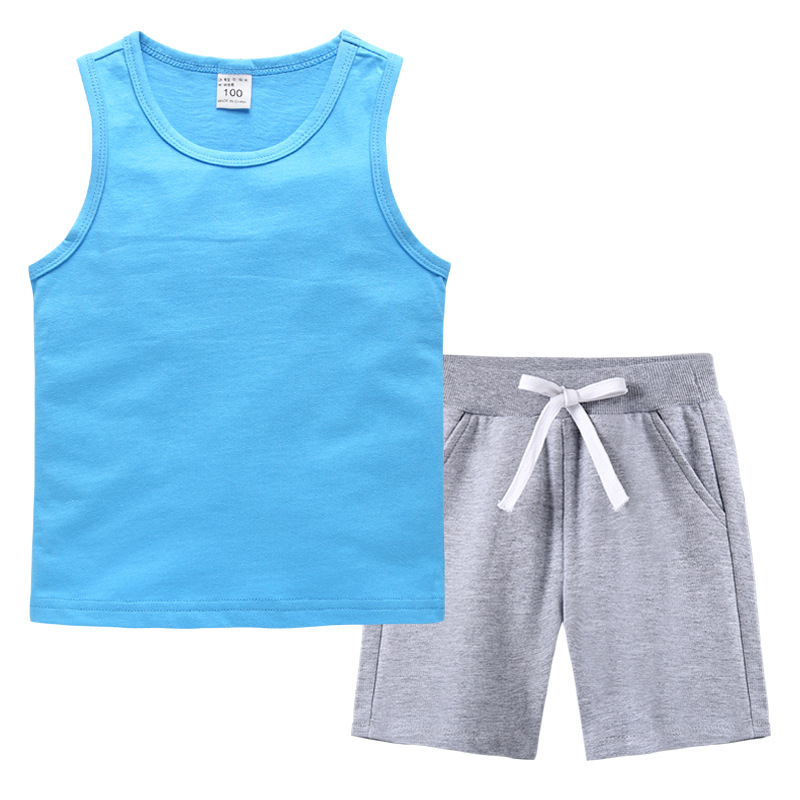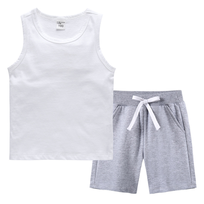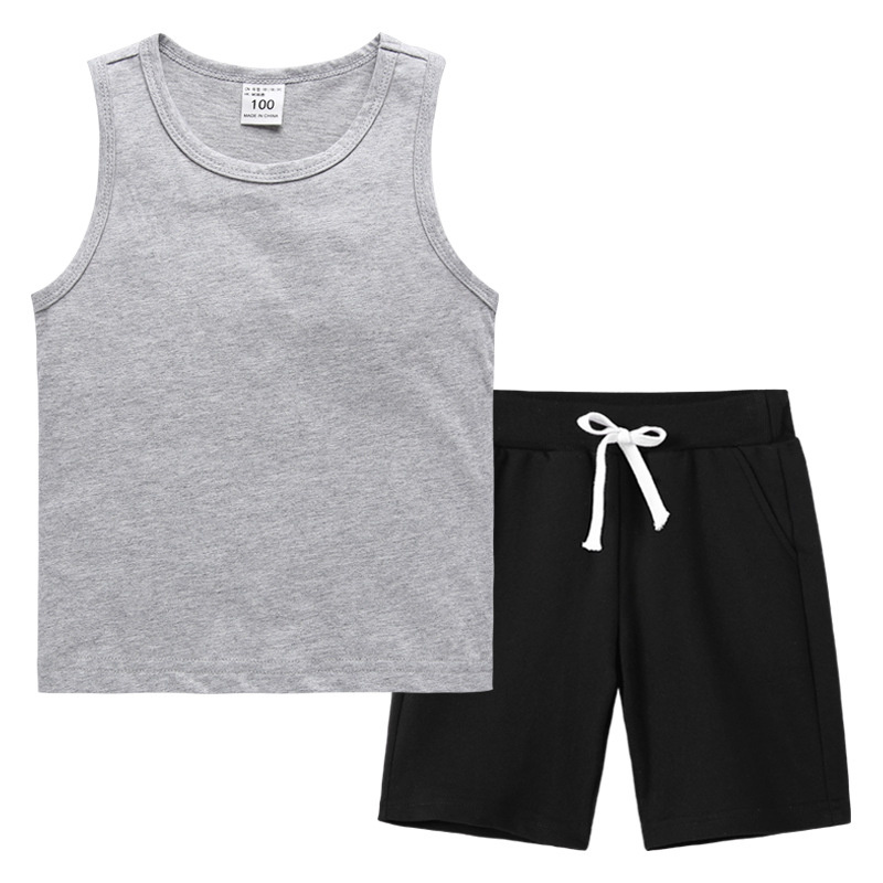 2023 년 어린이 여름 조끼 바지 스포츠 캐주얼베이스 셔츠 외부 착용 소형 및 중형 어린이를위한 얇은 민소매 투피스 세트