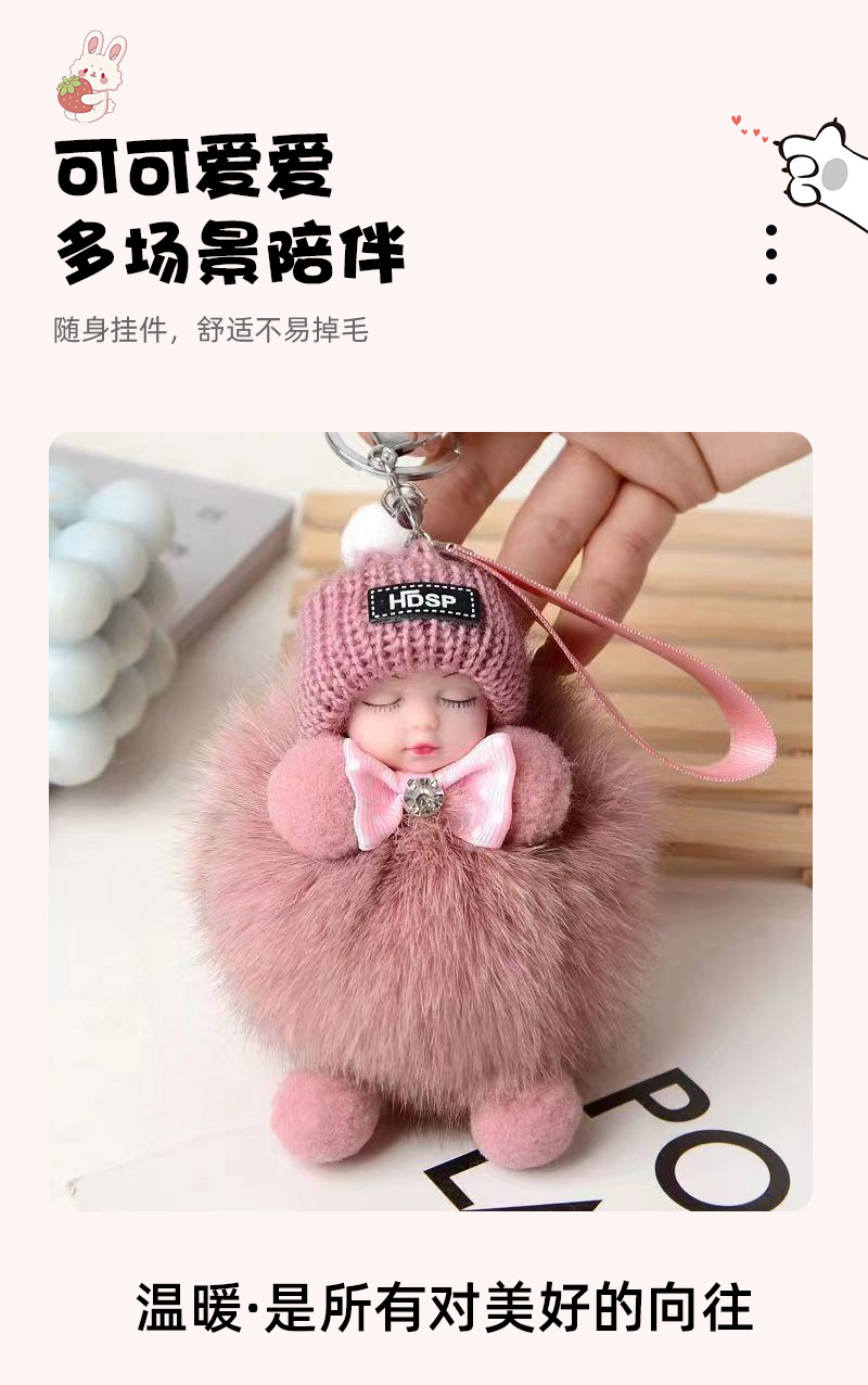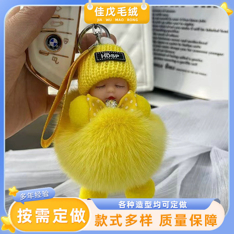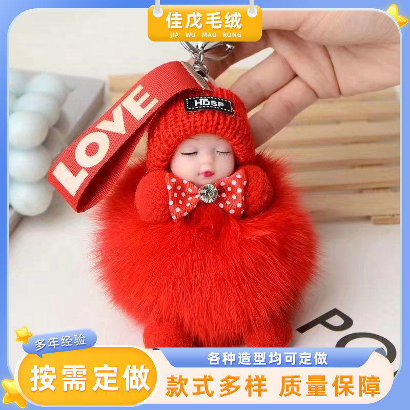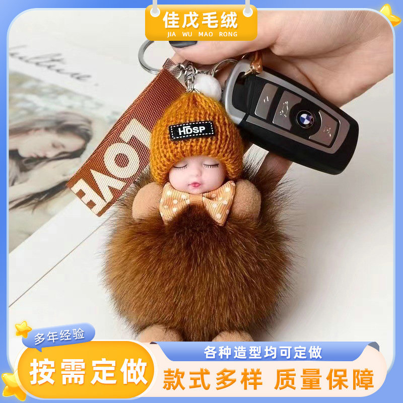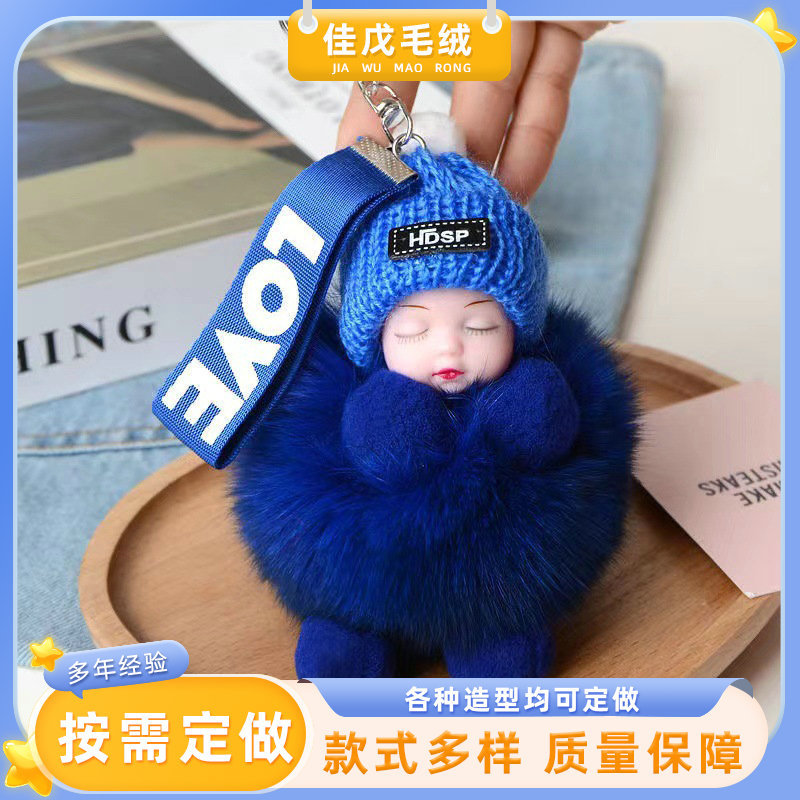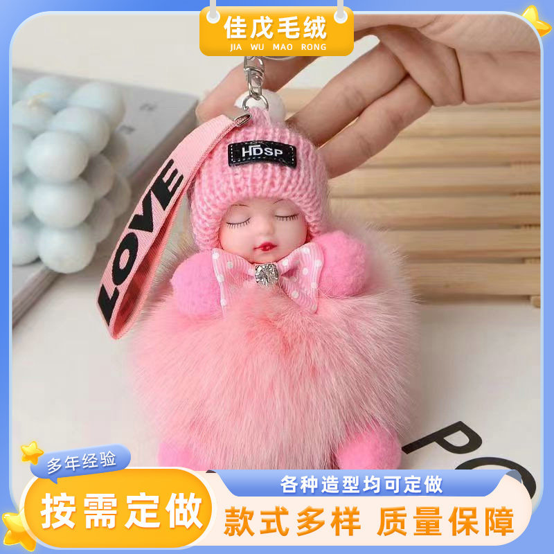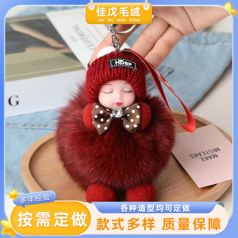공장 공급 봉제 펜던트 여우 모피 볼 펜던트 귀여운 봉제 인형 수면 인형 자동차 열쇠 고리