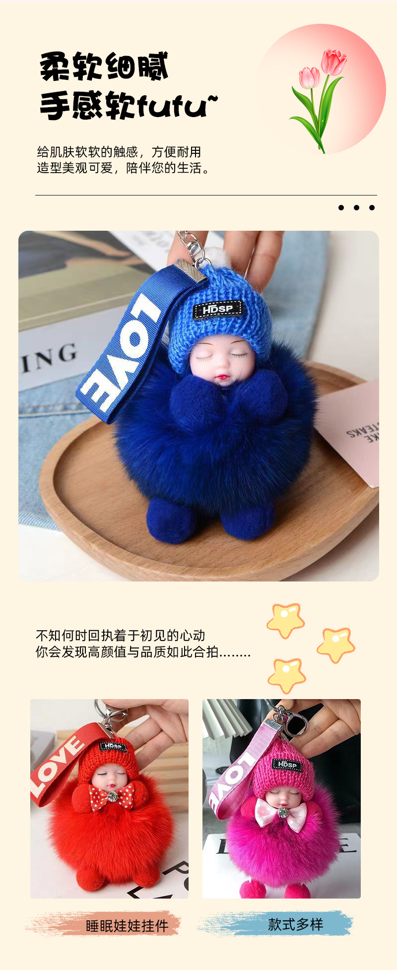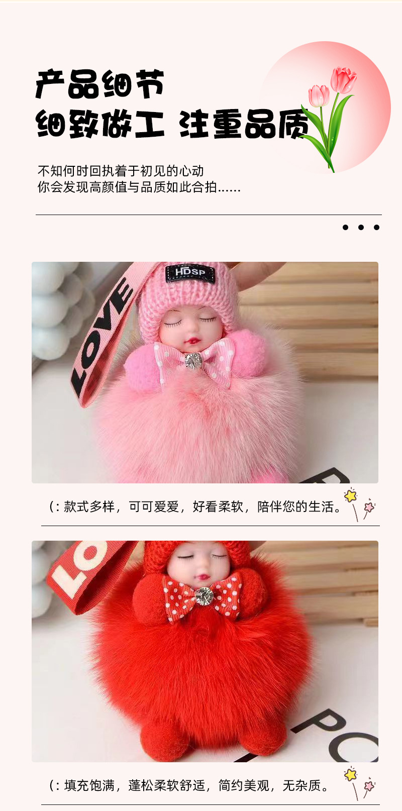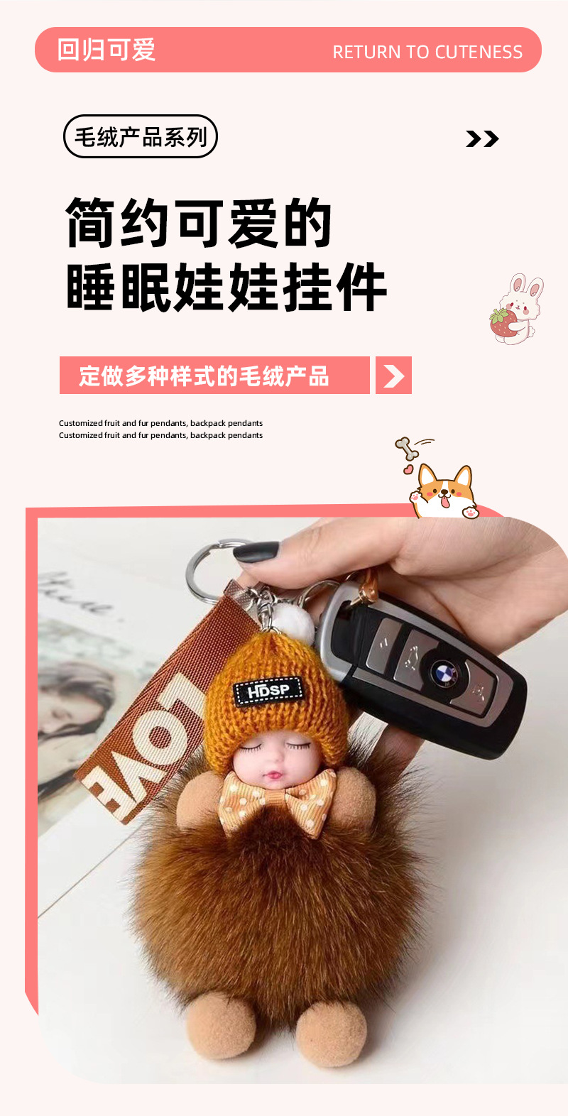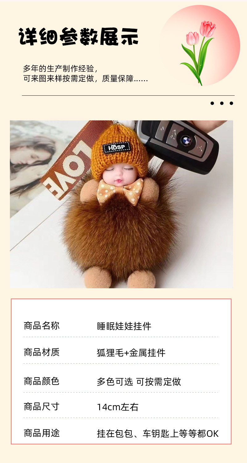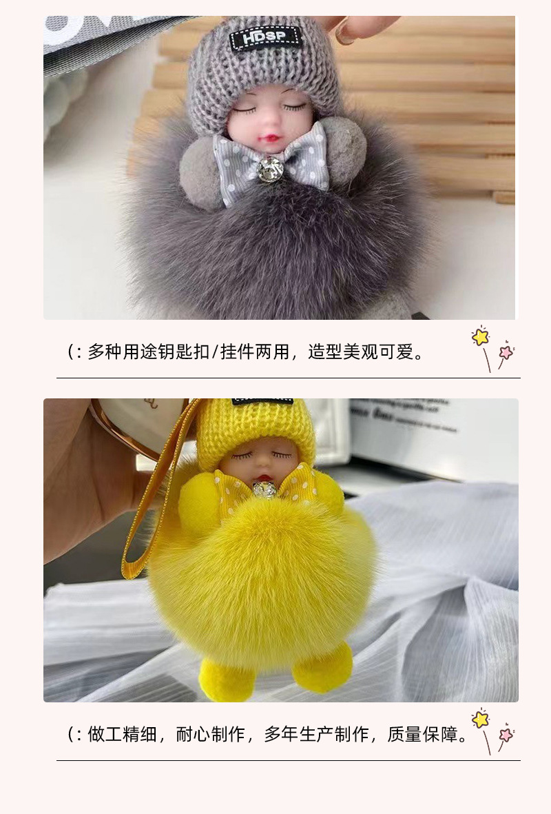 공장 공급 봉제 펜던트 여우 모피 볼 펜던트 귀여운 봉제 인형 수면 인형 자동차 열쇠 고리