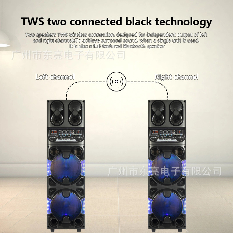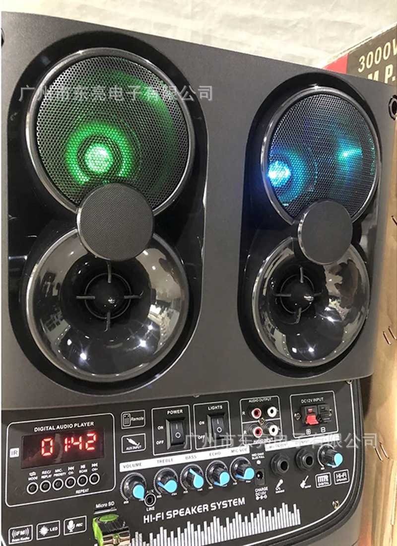 功能:蓝牙、USB、TF、AUX、FM、TWS串联、LED显示屏、彩灯、遥控器、无线麦克风