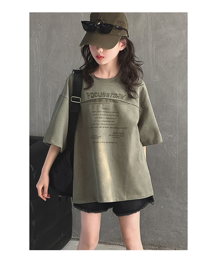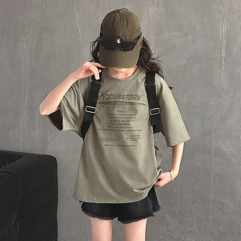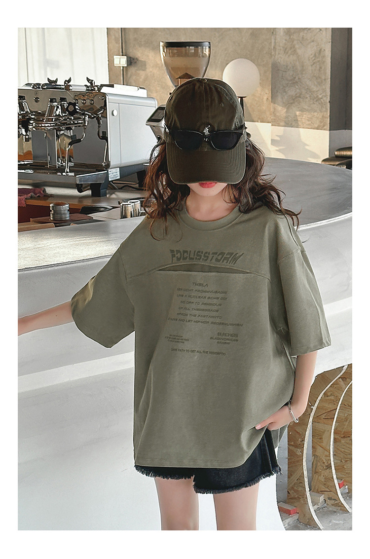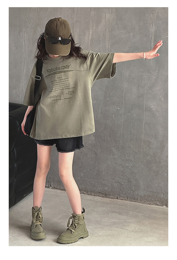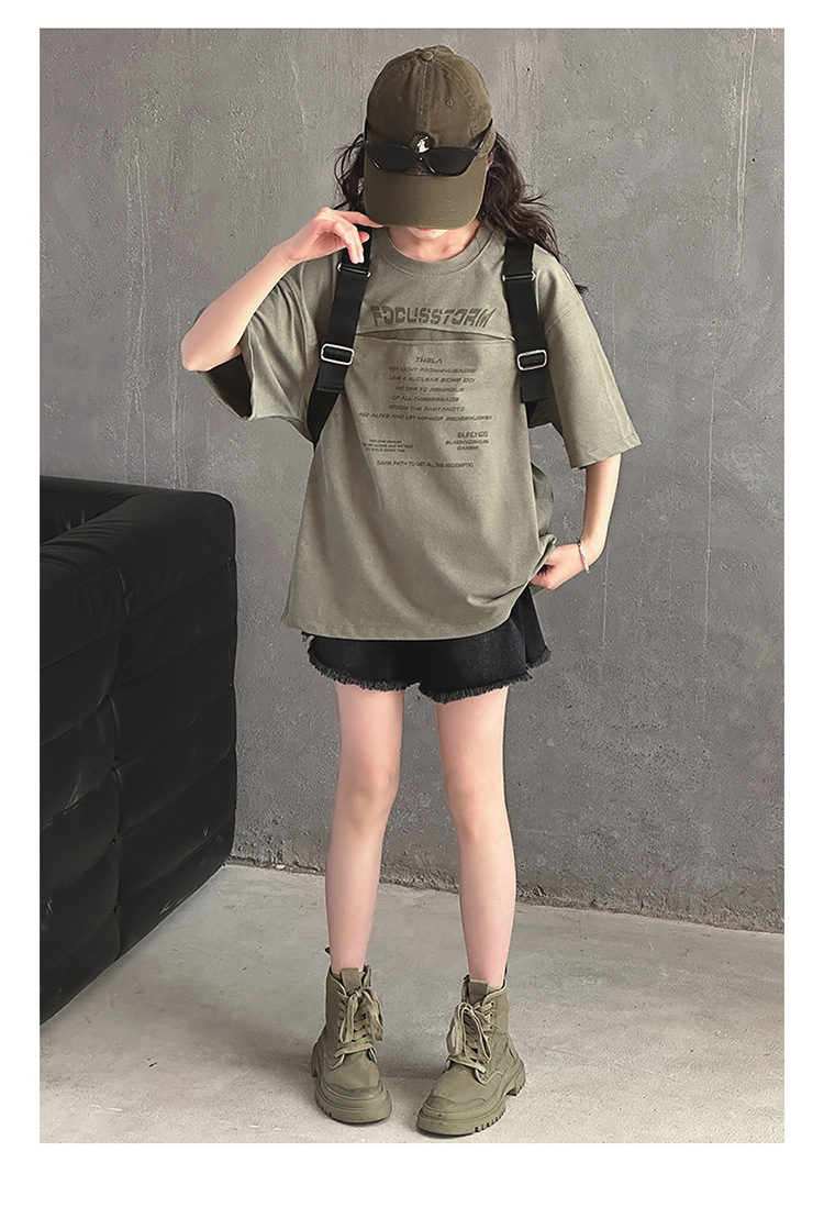 여아 반팔 티셔츠 2025 여름 신상 한국 스타일 트렌디한 중대형 아동용 패셔너블한 반팔 티셔츠스토어 가기