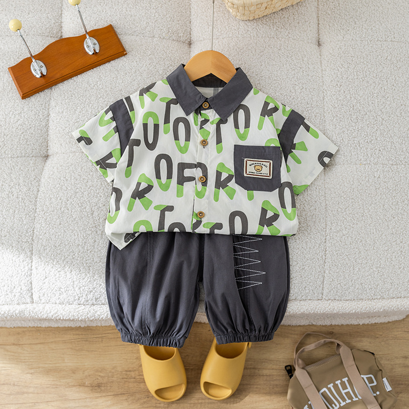 소년 대외 무역 여름 새 셔츠 반팔 세트 아기 캐주얼 반바지 투피스 세트 아기 어린이 여름 옷스토어 가기