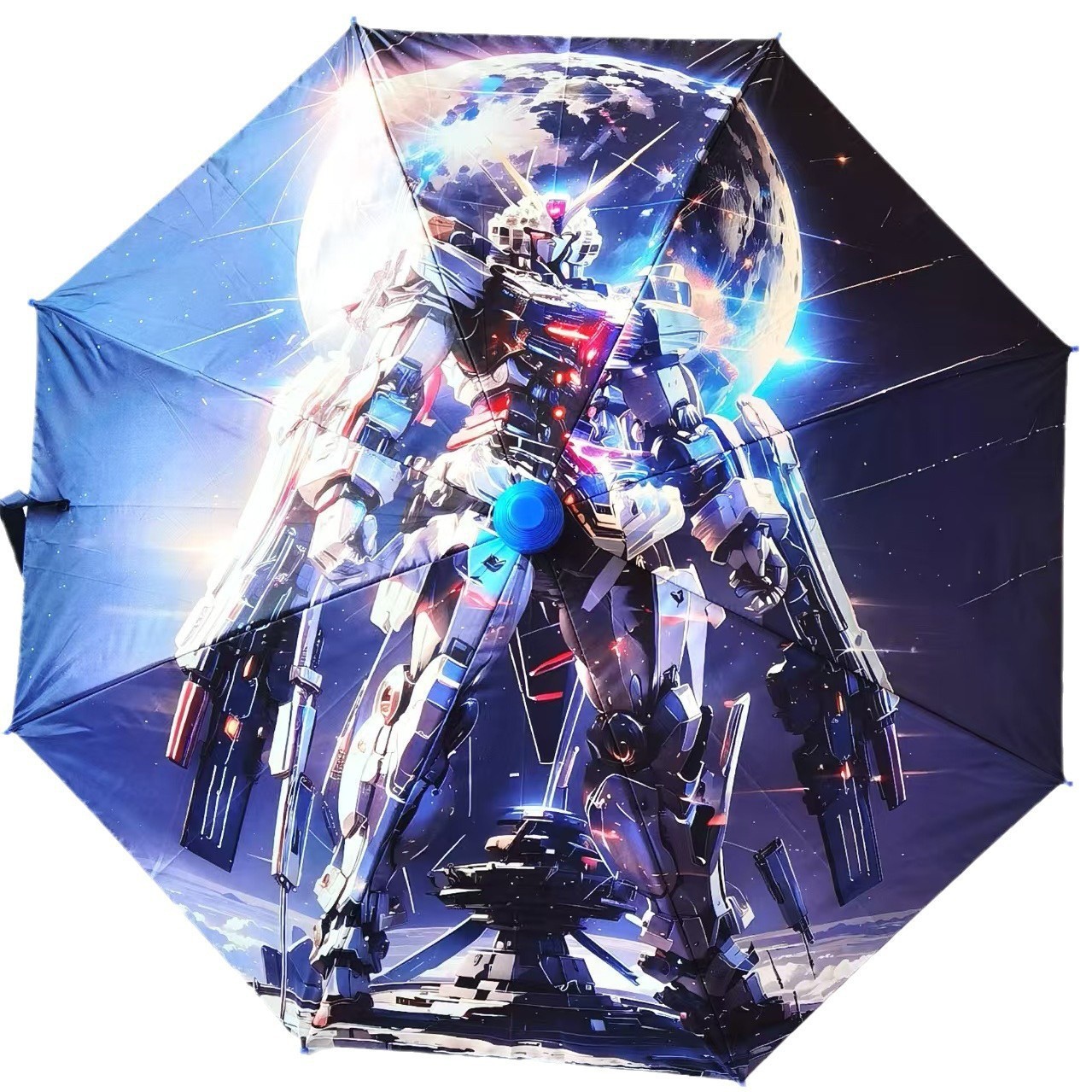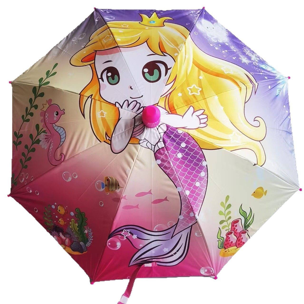 남학생과 여학생을위한 검은 고무 어린이 우산 디지털 인쇄 스티칭 패턴 귀여운 초경량 자동 안전 어린이스토어 가기