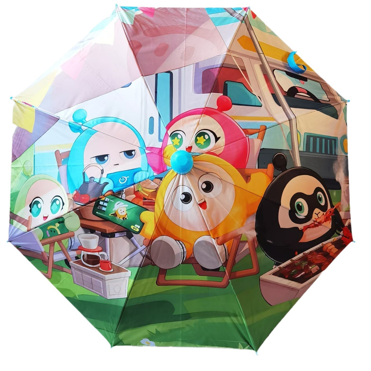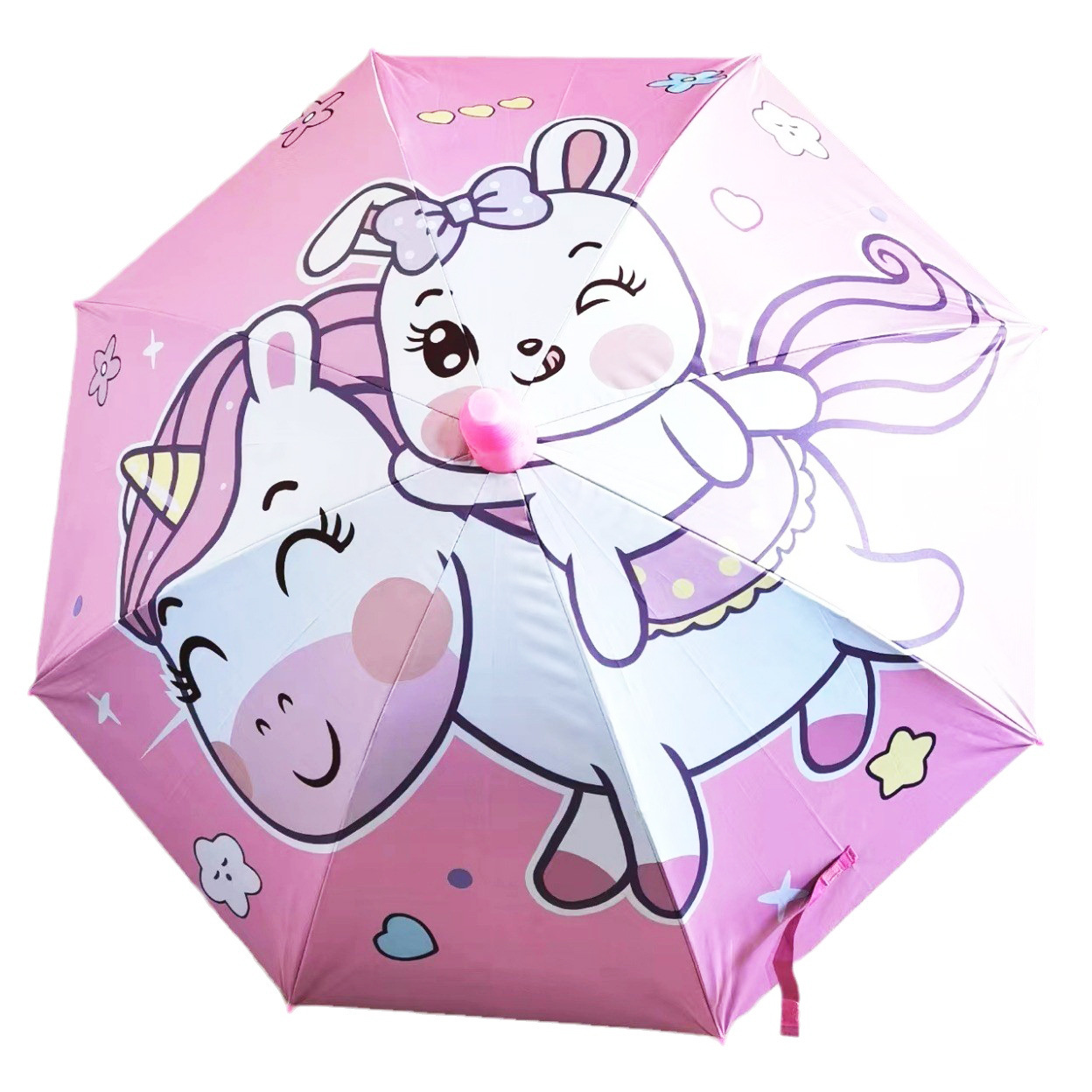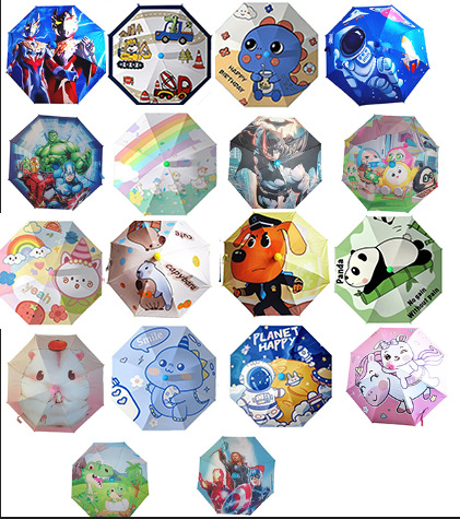 남학생과 여학생을위한 검은 고무 어린이 우산 디지털 인쇄 스티칭 패턴 귀여운 초경량 자동 안전 어린이