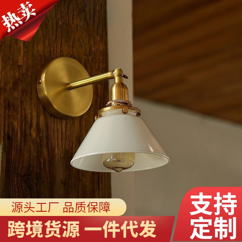 레트로 북유럽 간단한 욕실 그림 유리 거울 헤드 라이트 일본 스타일 침대 옆 청동 벽 램프스토어 가기