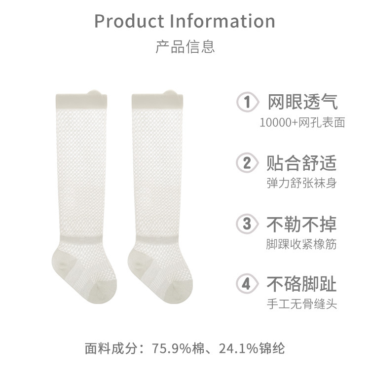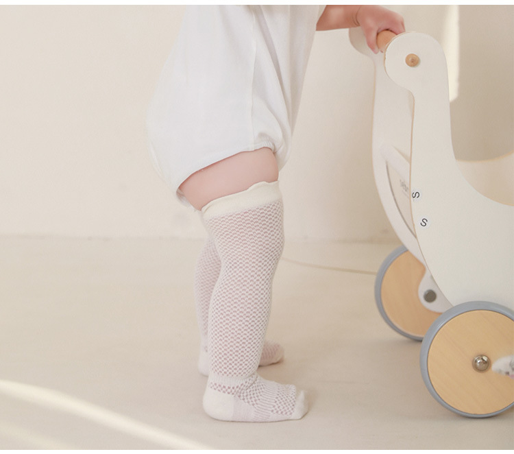 신생아 양말 여름 초박형 높은 튜브 안티 모기 메쉬 양말 뼈없는 느슨한 입 다리 아기 면화 양말