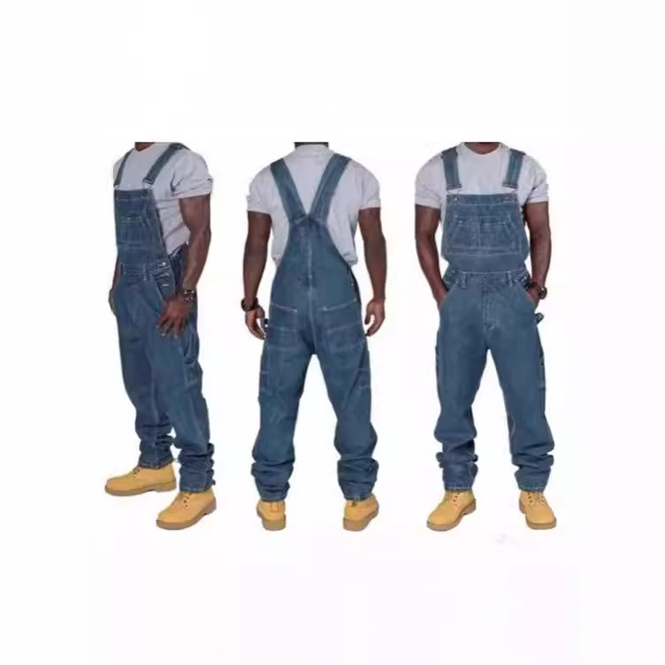 Q003 남자 데님 봄과 가을 남자 데님 원피스 멀티 포켓 느슨한 단색 캐주얼 멜빵스토어 가기