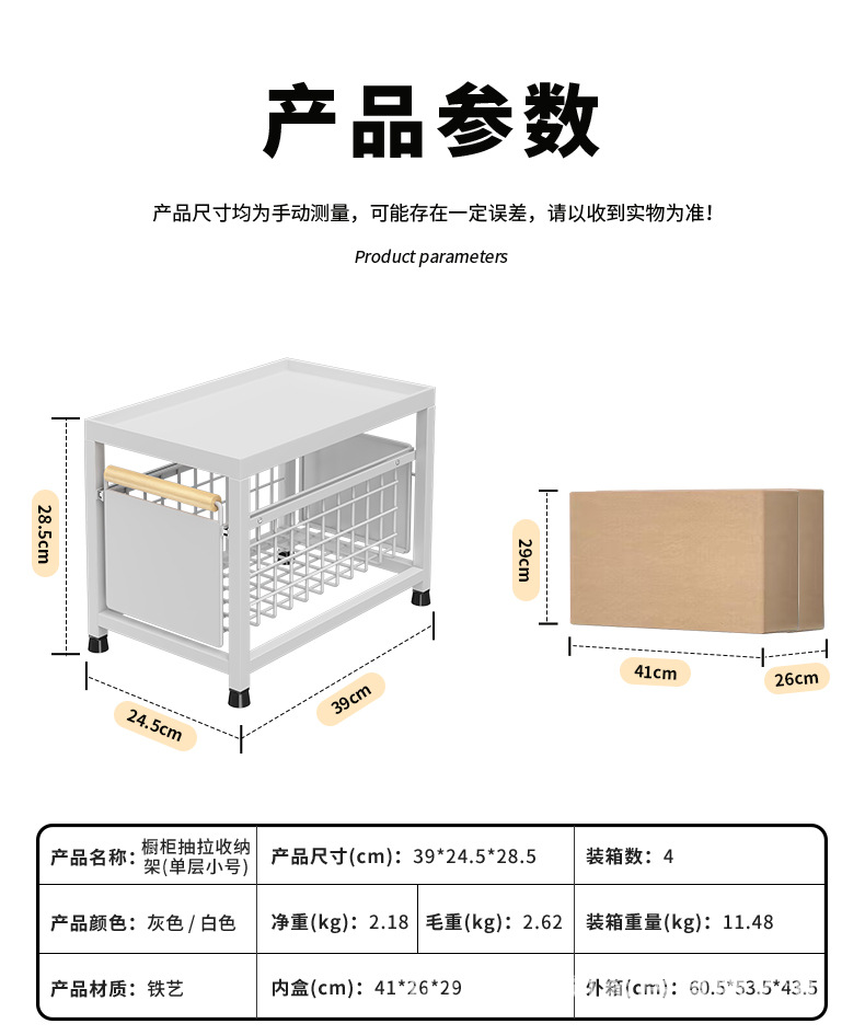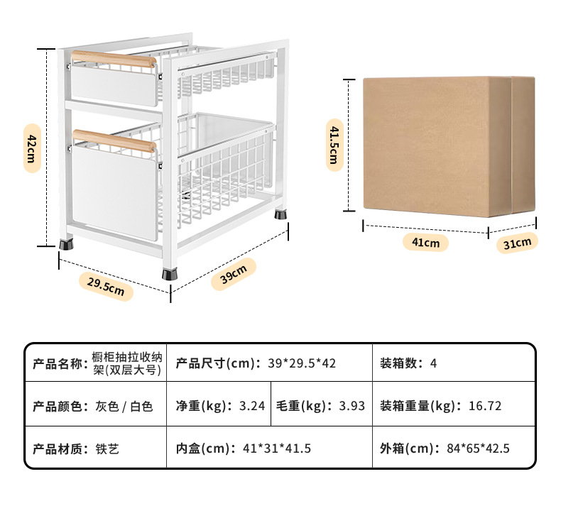 주방 싱크 스토리지 랙 드로잉 가능한 다기능 싱크 스토리지 랙 잡화 양초 정렬 캐비닛 바구니 라미네이트 랙