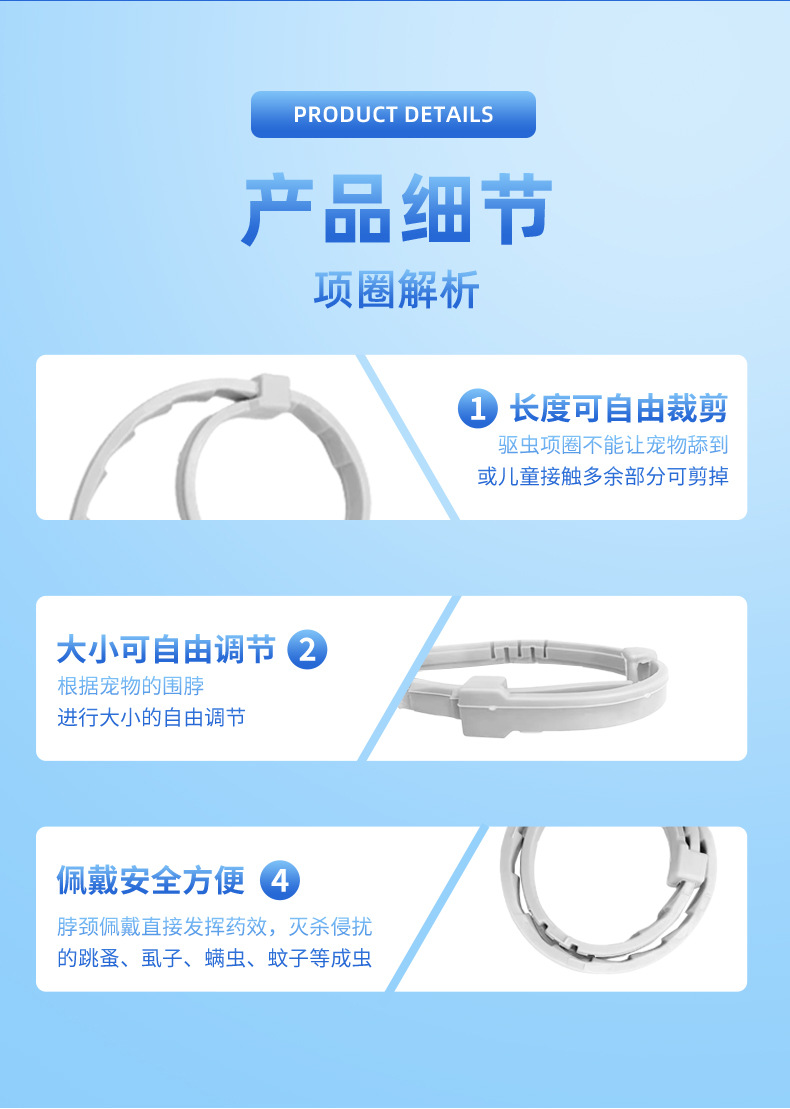 고양이와 개를 위한 국경 간 인기 판매 현장 애완동물 구충제 목걸이, 벼룩 방지 목걸이, 크기 조절 가능 애완동물 용품스토어 가기