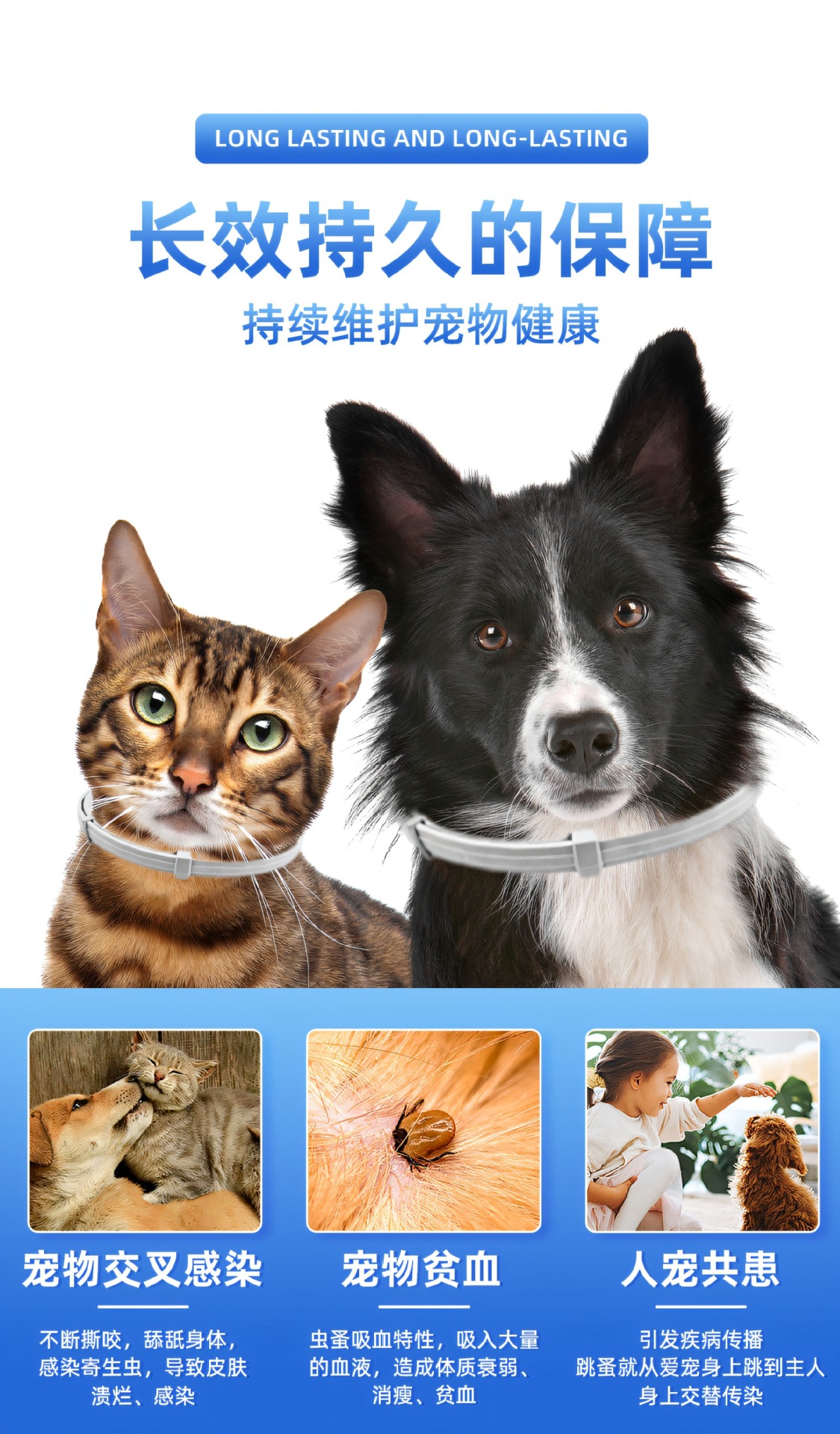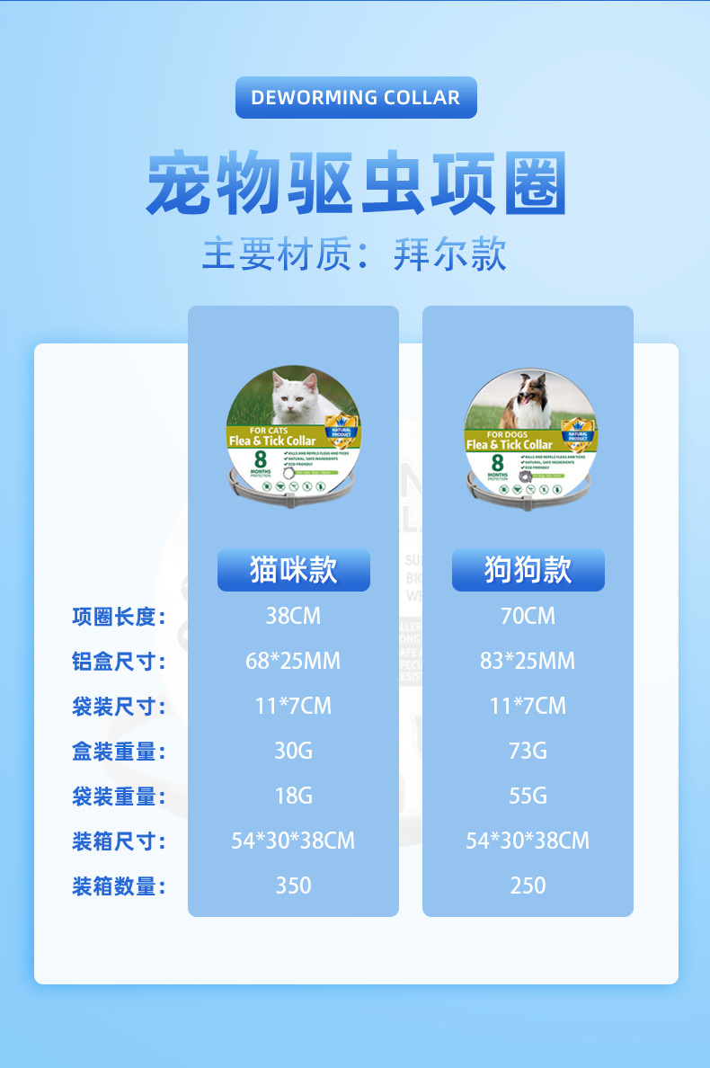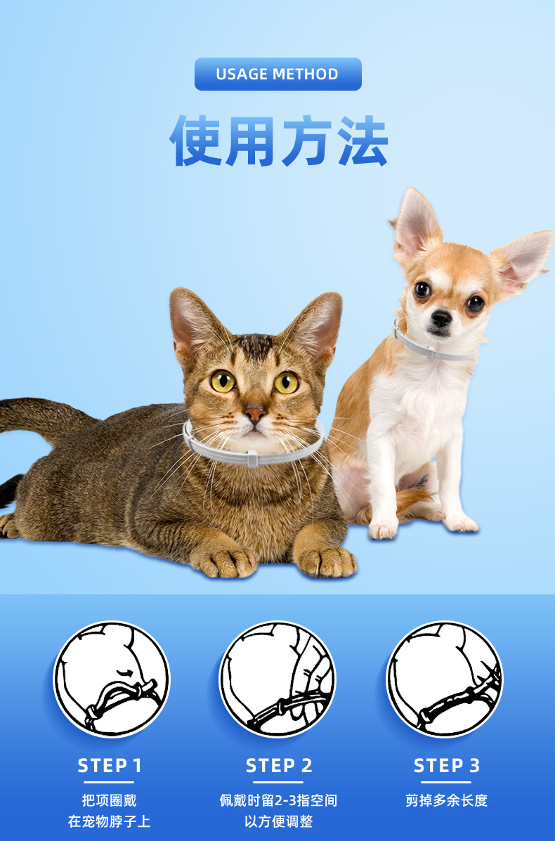 고양이와 개를 위한 국경 간 인기 판매 현장 애완동물 구충제 목걸이, 벼룩 방지 목걸이, 크기 조절 가능 애완동물 용품