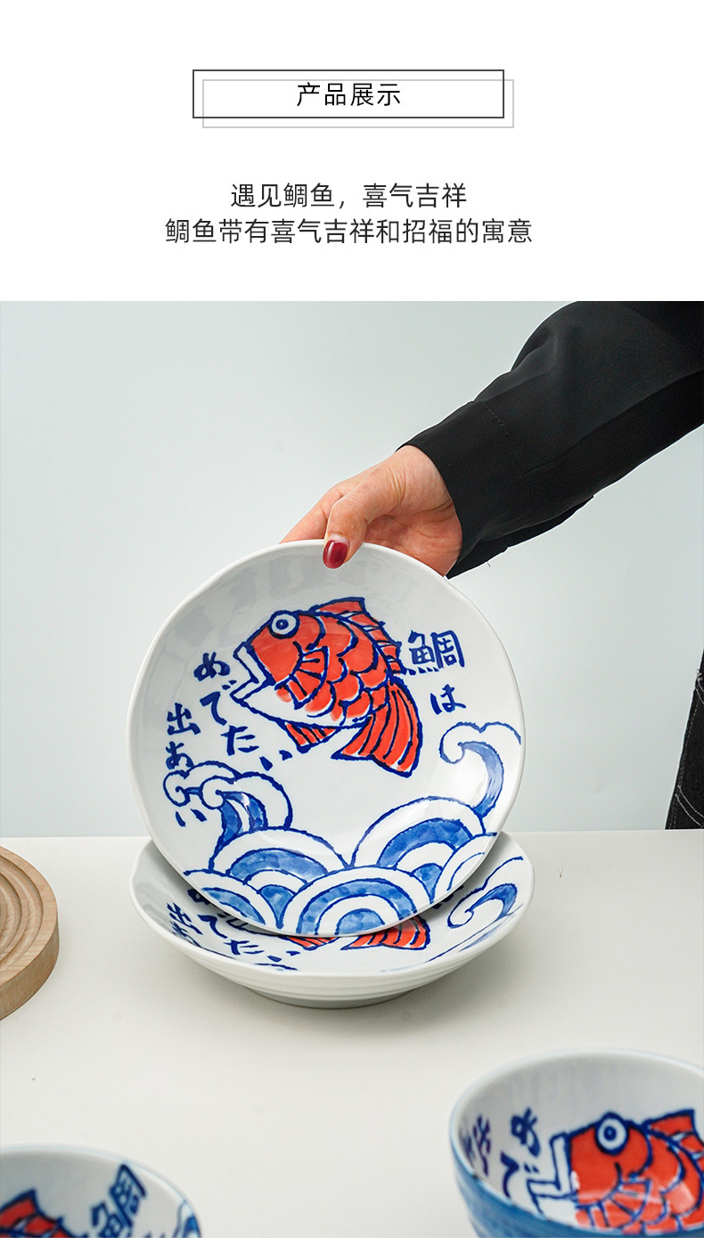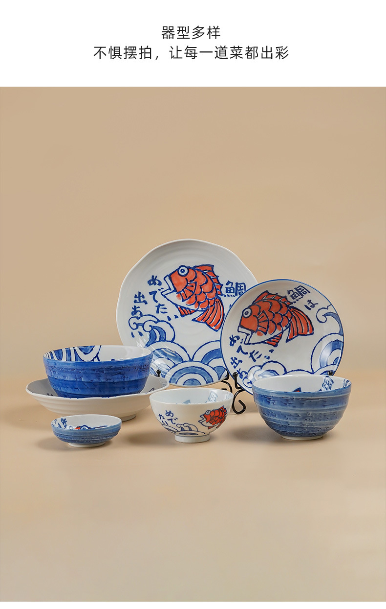 미노야키 일본 수입 창작 심플 페인팅 메기 시리즈 세라믹 그릇 세라믹 접시 주방 식기 싱글스토어 가기