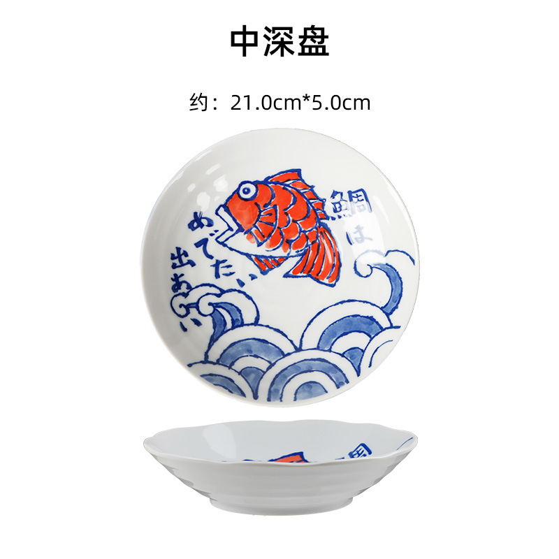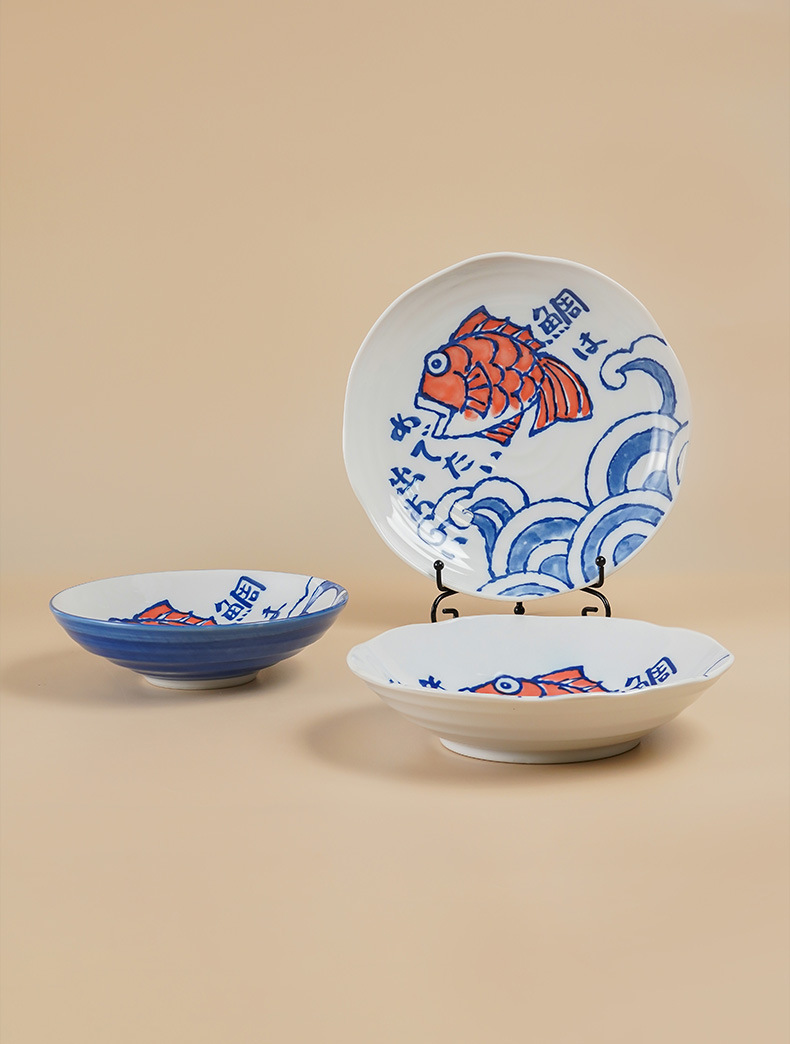 미노야키 일본 수입 창작 심플 페인팅 메기 시리즈 세라믹 그릇 세라믹 접시 주방 식기 싱글
