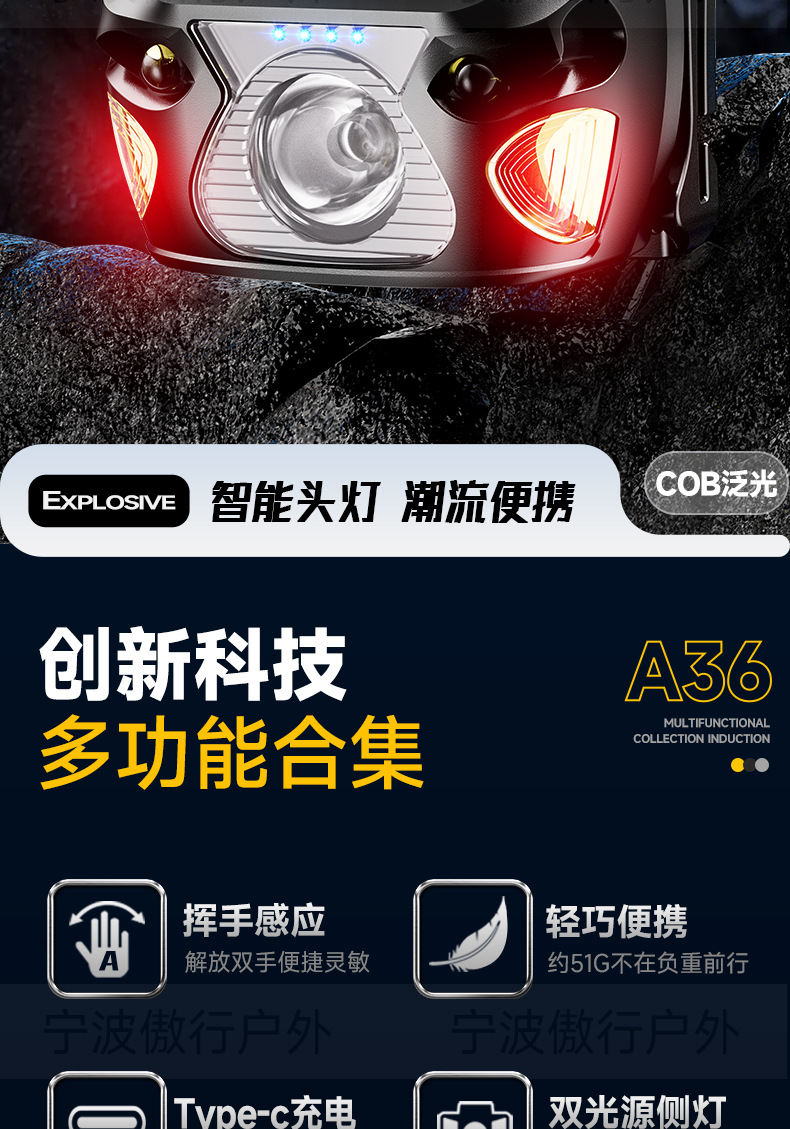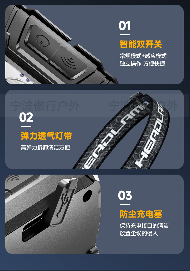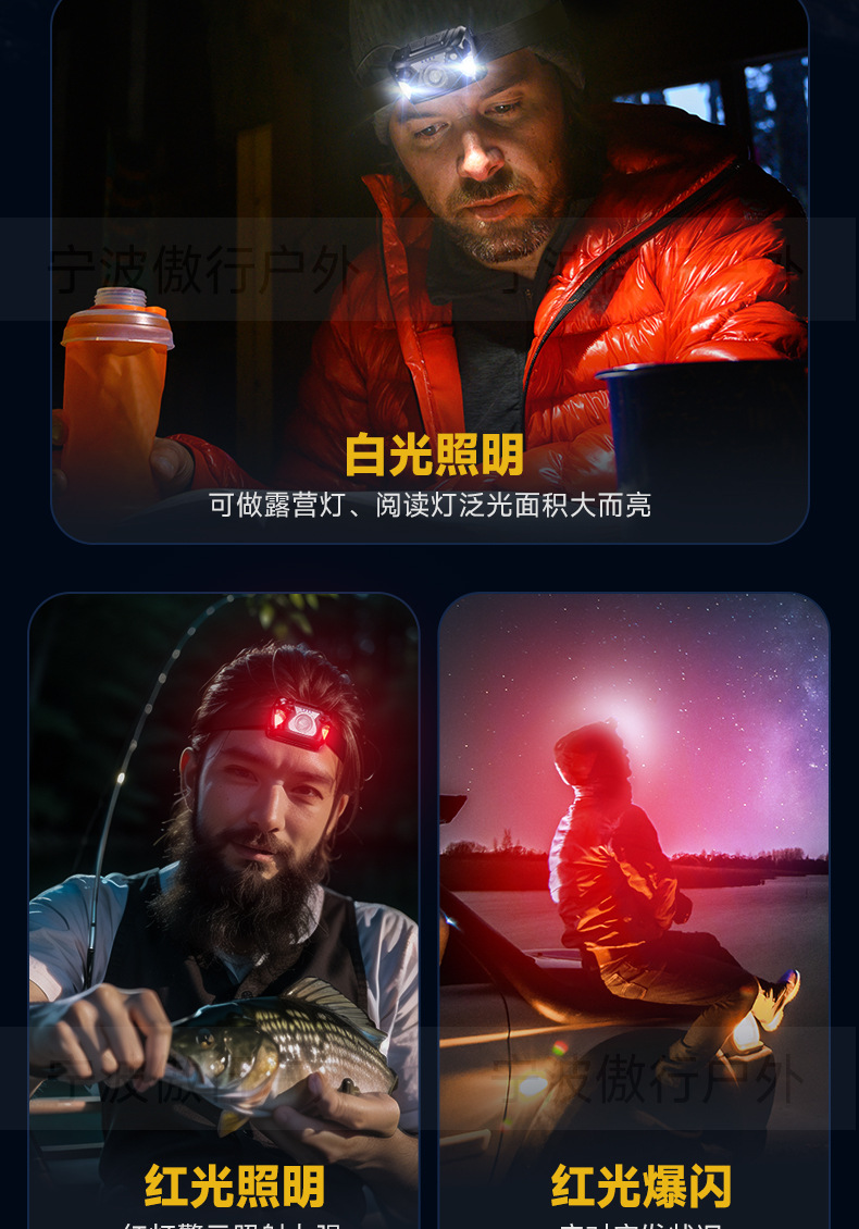 국경 간 새로운 긴 수명 헤드 램프 충전 헤드 램프 손전등 야외 야간 낚시 램프 조명 유도스토어 가기