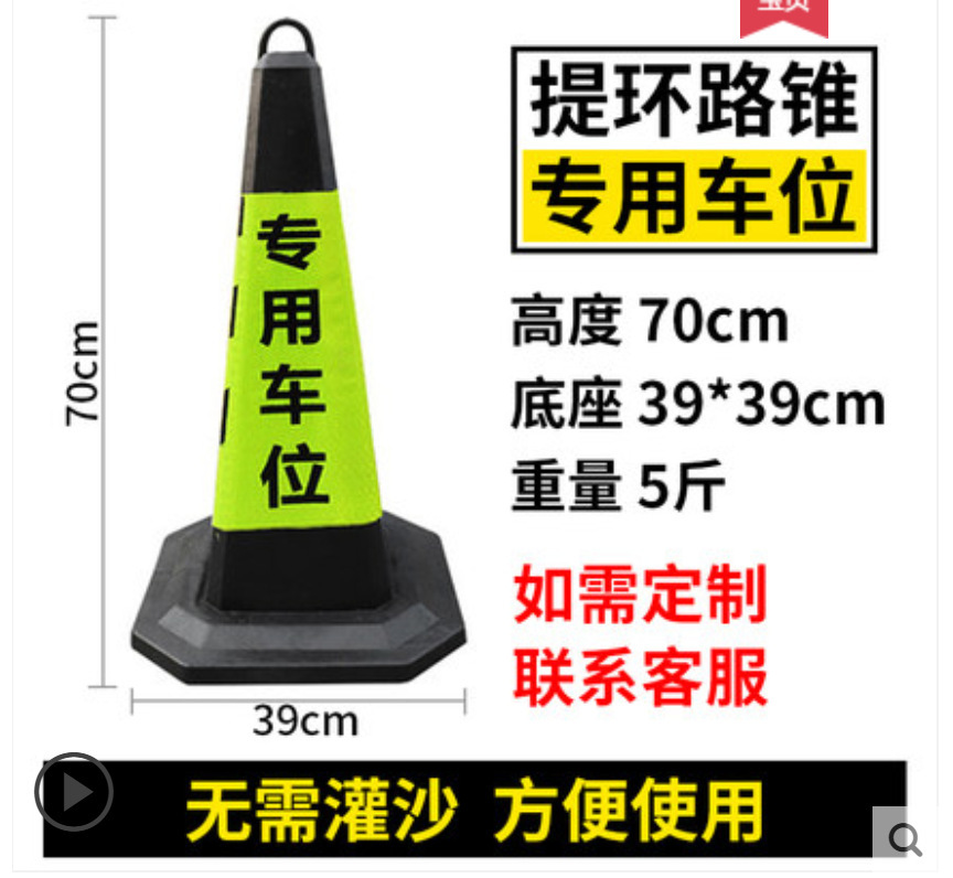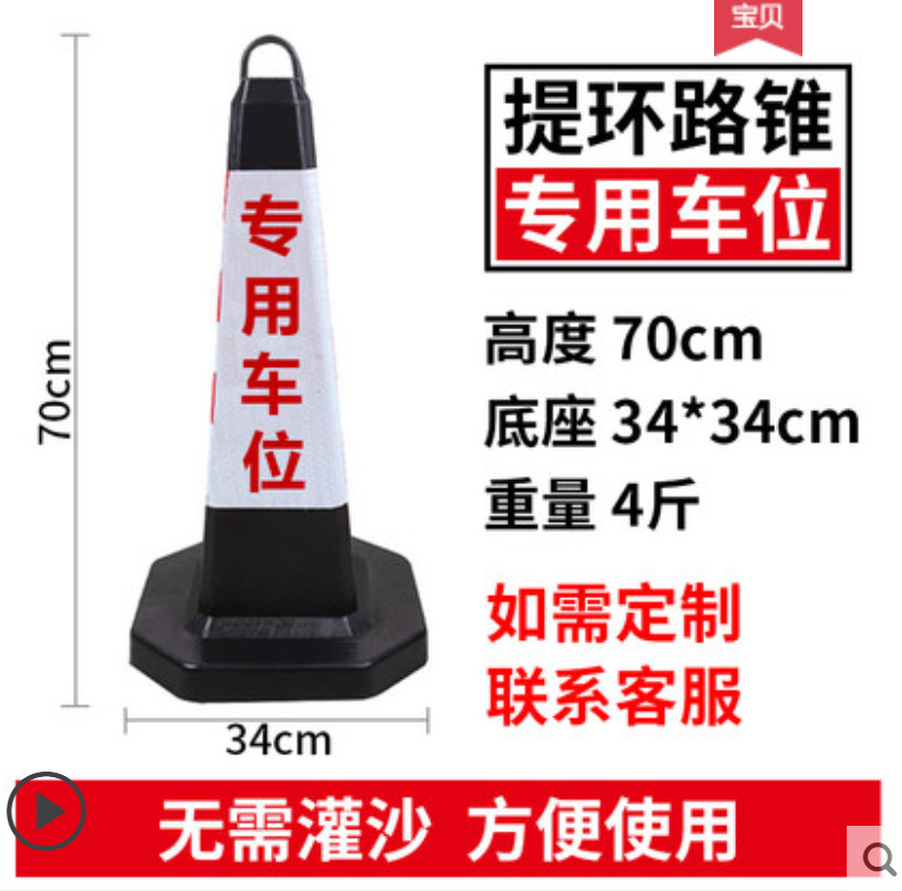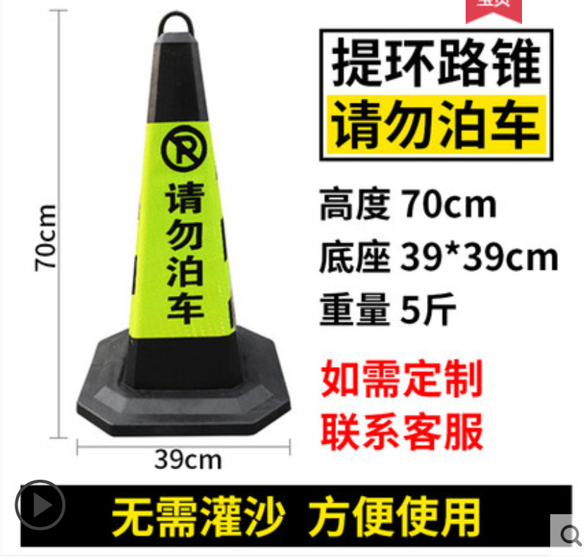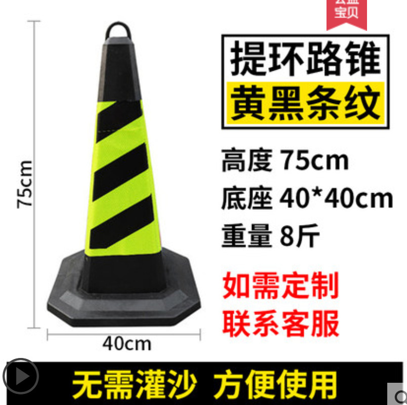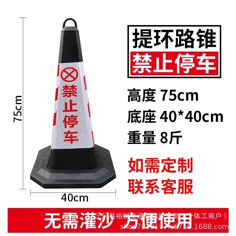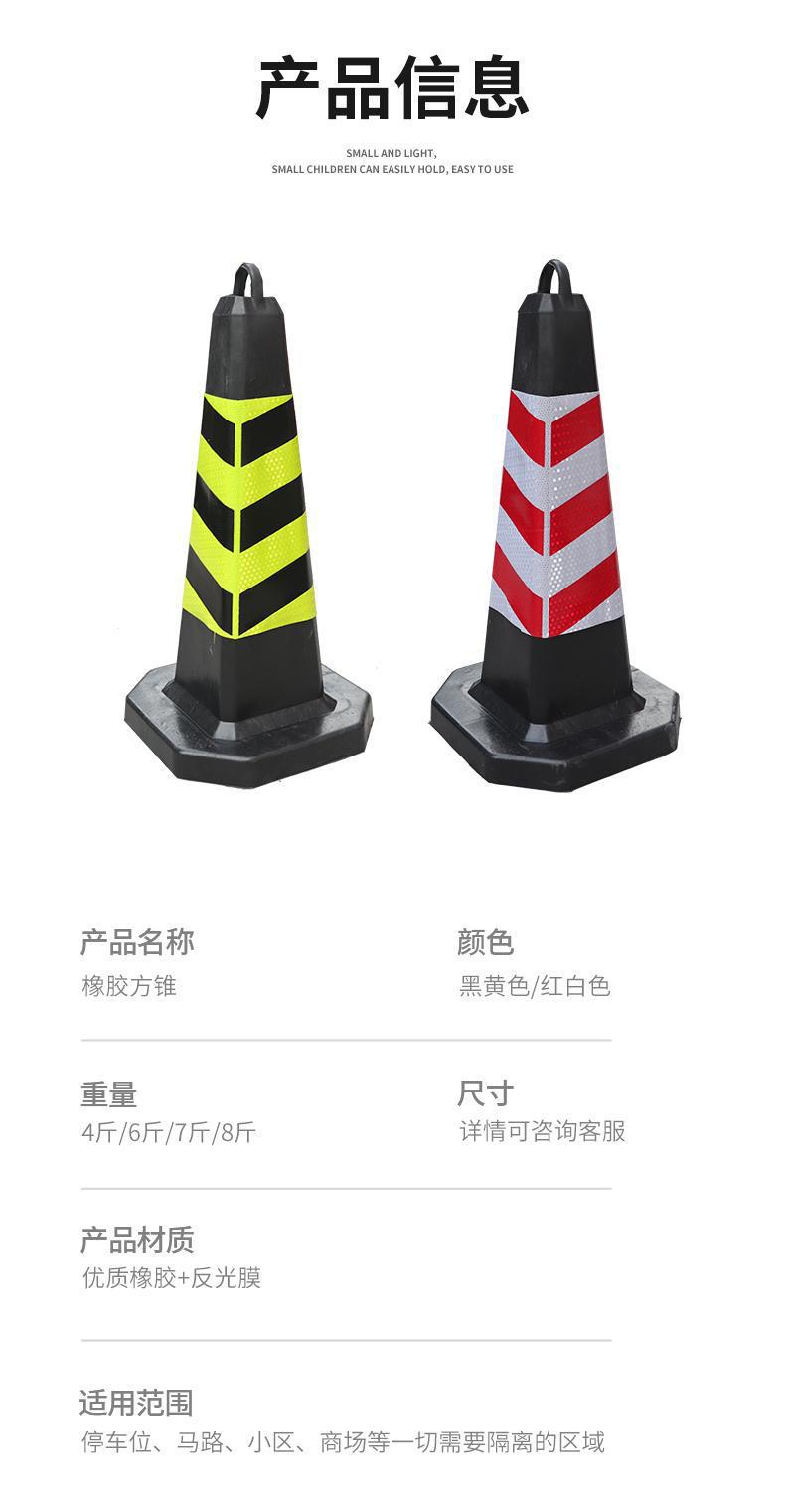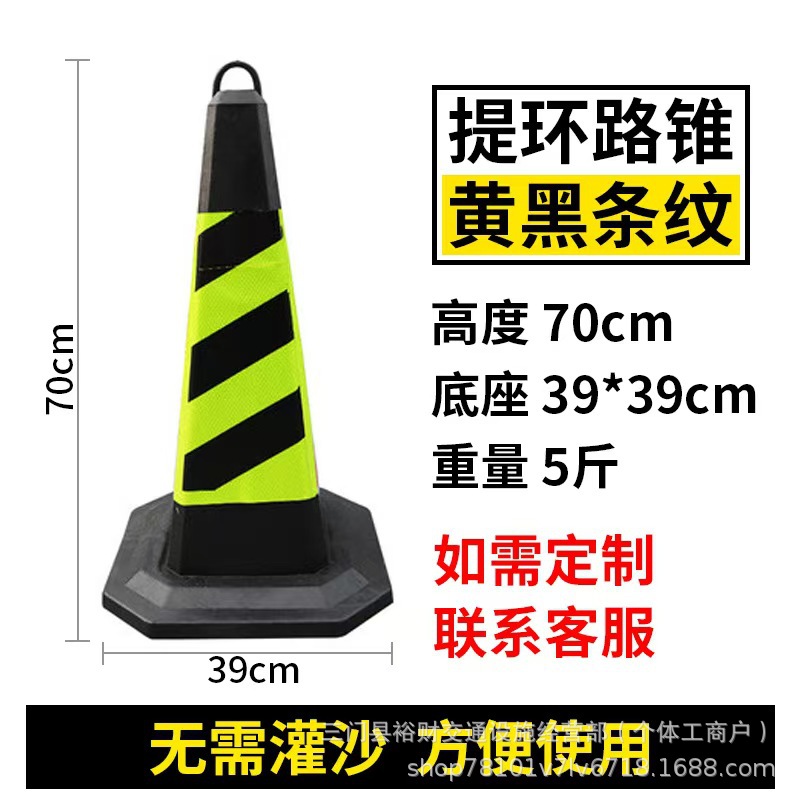 70cm 고무 도로 콘 2kg 사각 콘 주차 금지 반사 콘 아이스크림 콘 주차 차단기 차단벽 경고스토어 가기