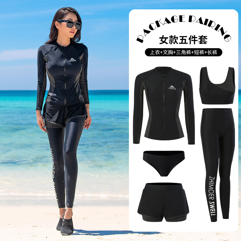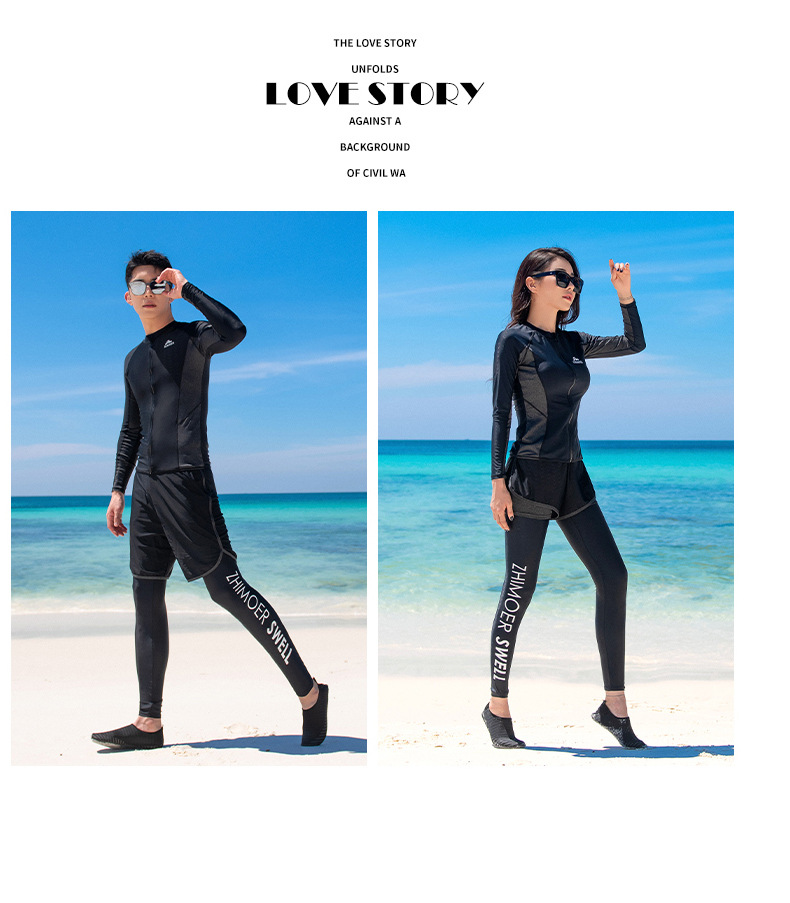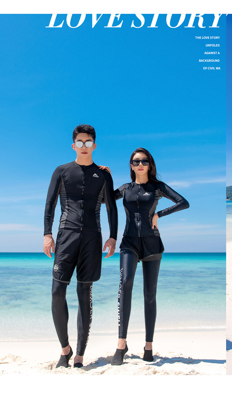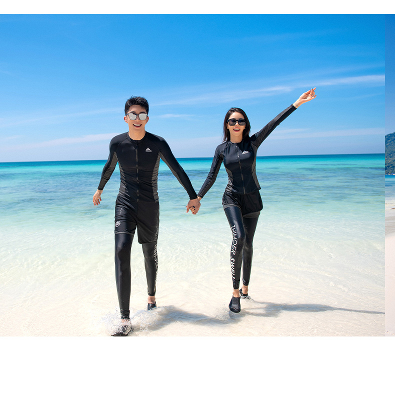 커플의 다이빙 세트 자외선 차단제 빠른 건조 스포츠 서핑 수영복 분할 긴 소매 한국어 버전 2024 새로운 국경 수영복