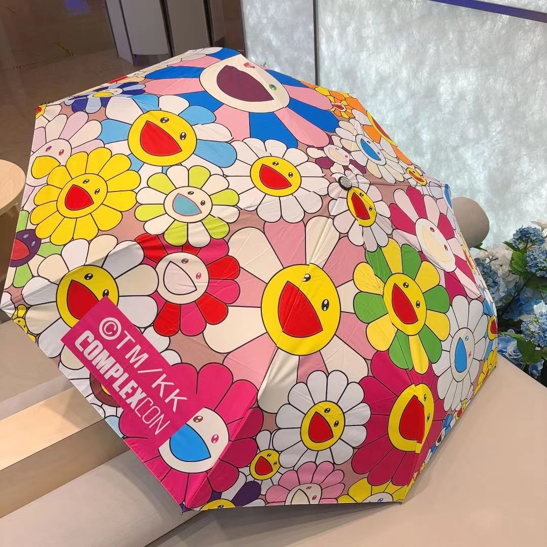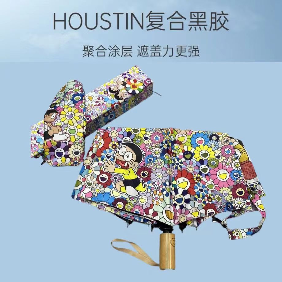 해바라기 우산 부티크 3 섹션 검은 접착제 선물 써니 우산 이중 사용 양산 선 스크린 우산 공장 스트레이트 헤어 가공