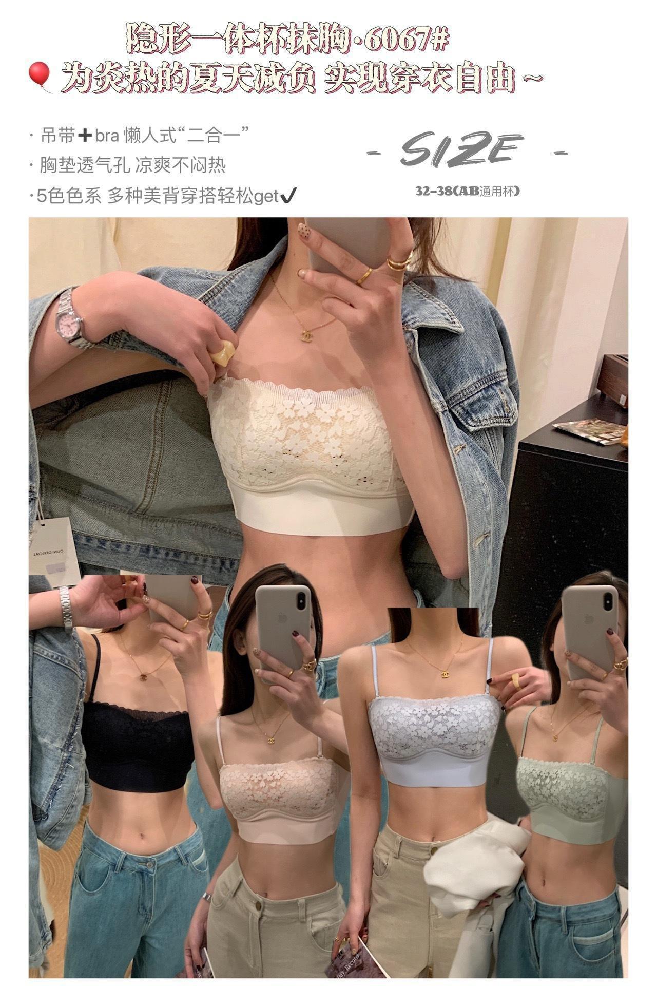 6067 새로운 초박형 원피스 컵 튜브 통기성 분리 가능한 어깨 브래지어 슬링 아름다운 백 소녀 레이스 속옷스토어 가기