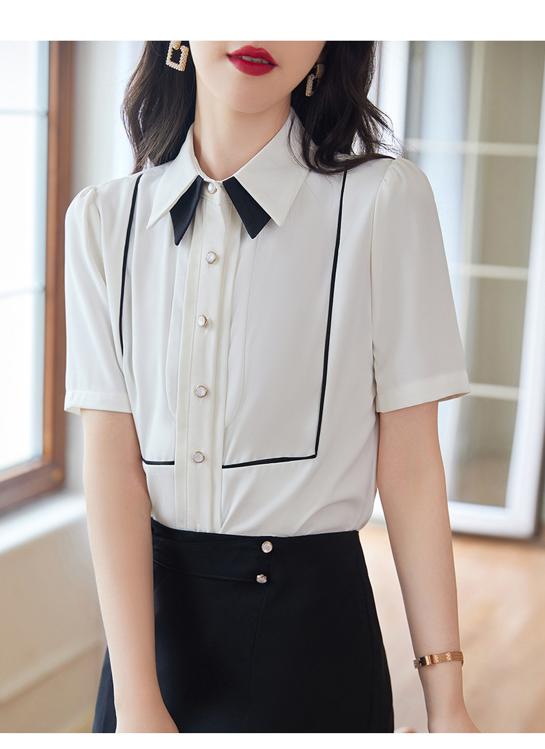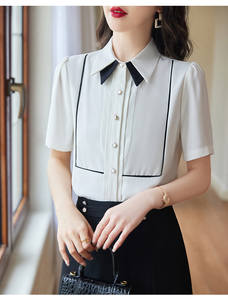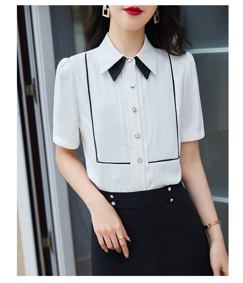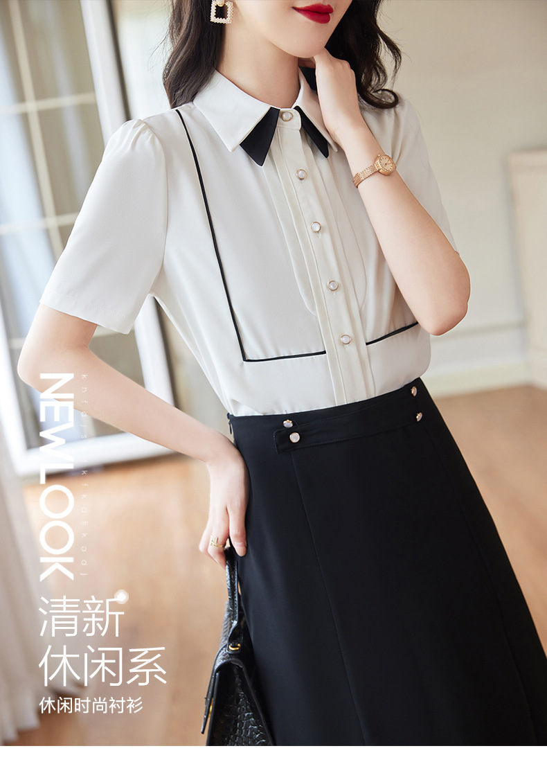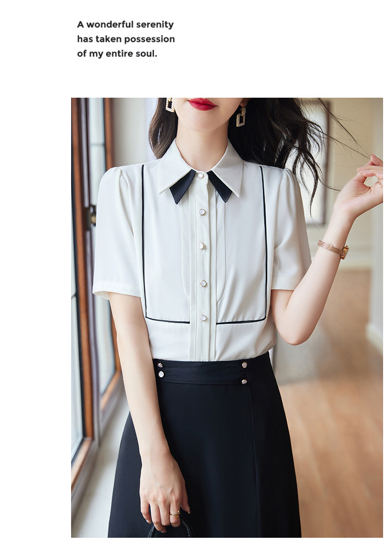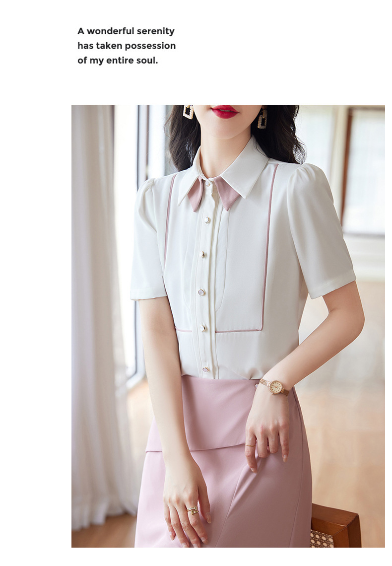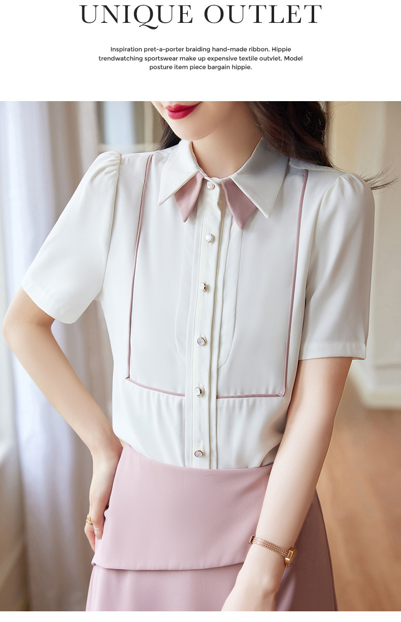 2024 여름 새로운 여성 의류 공급 도매 달콤한 디자인 인형 칼라 활 짧은 소매 셔츠 일본 여성스토어 가기