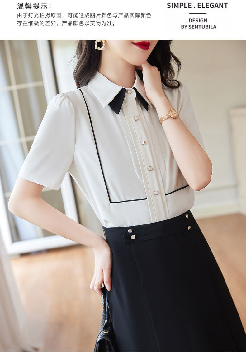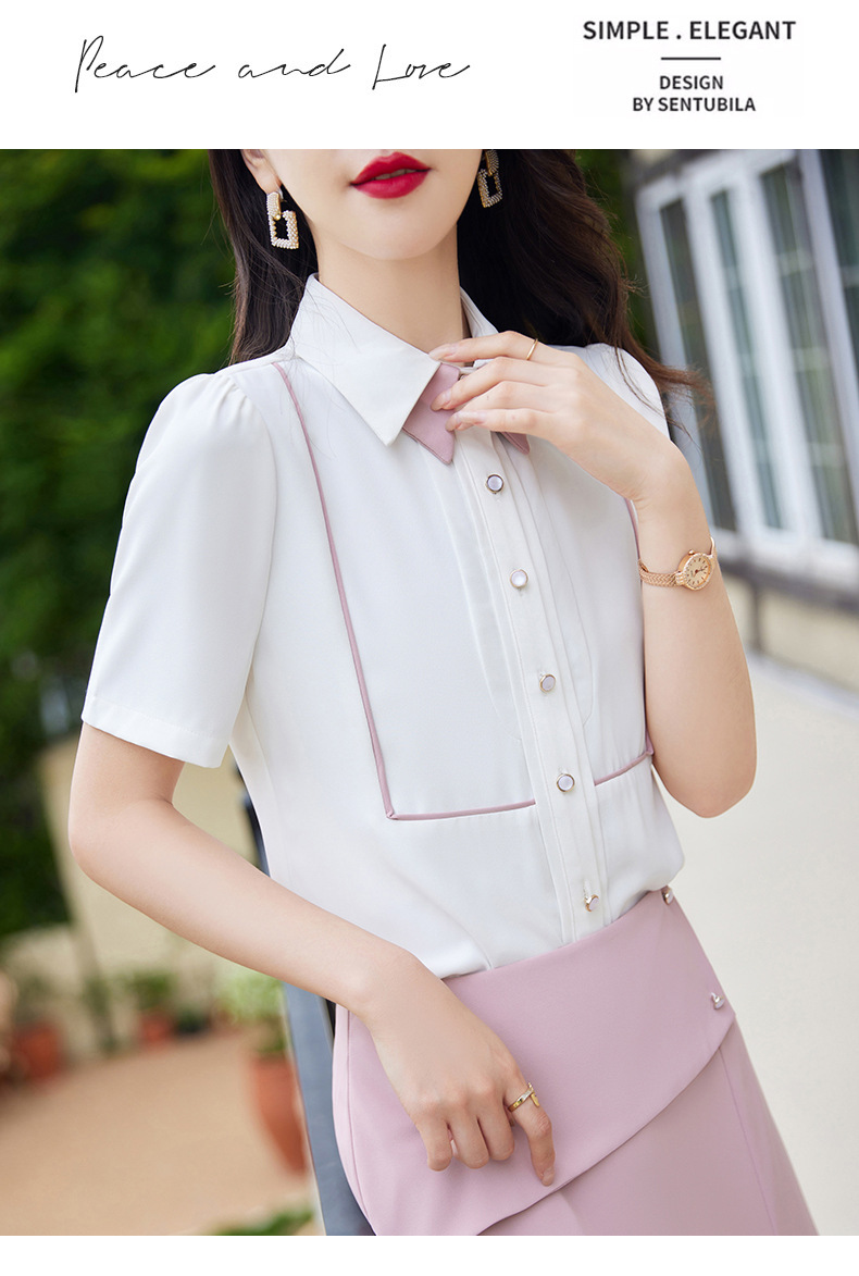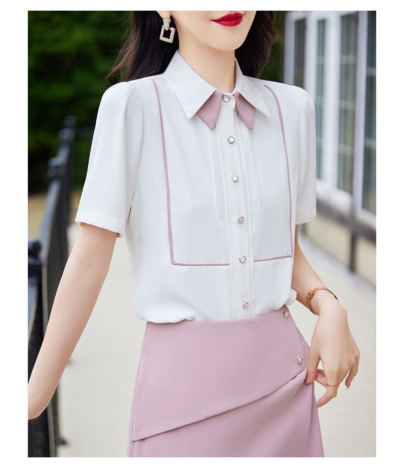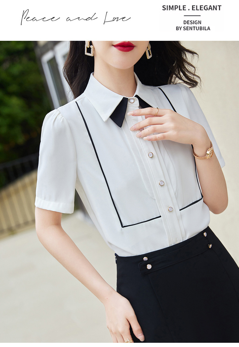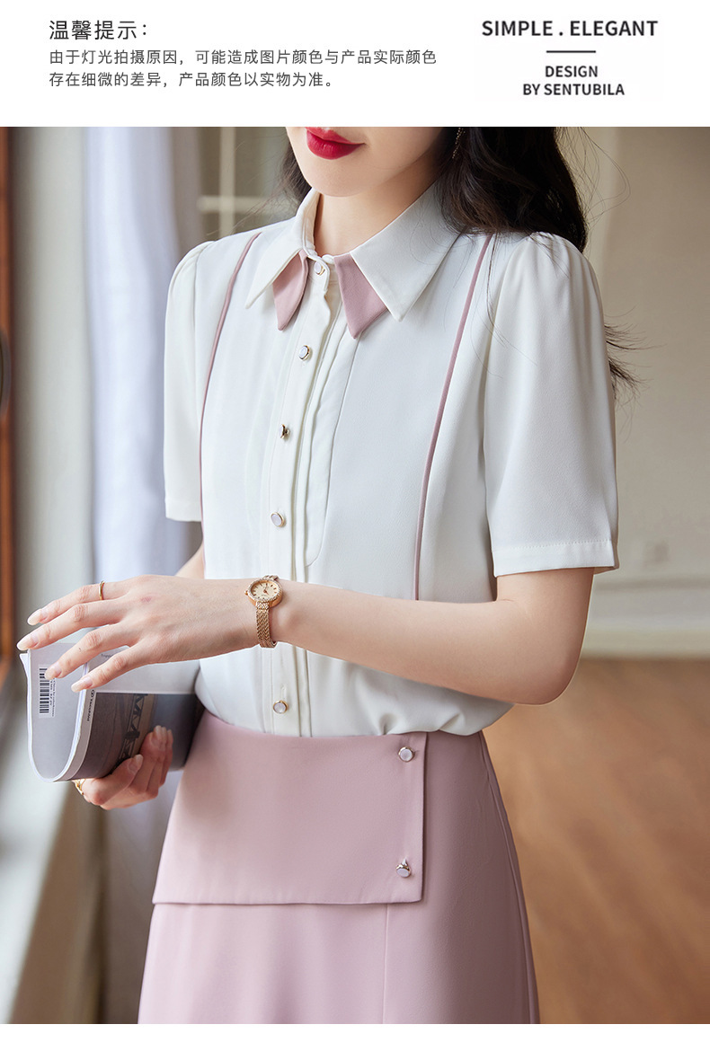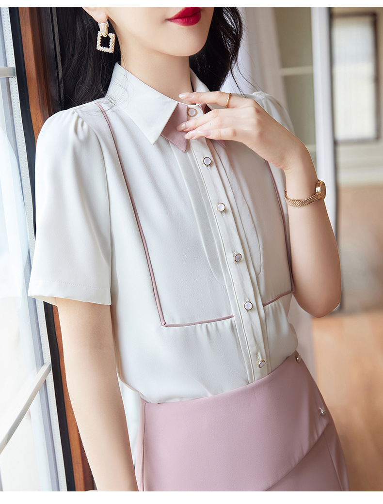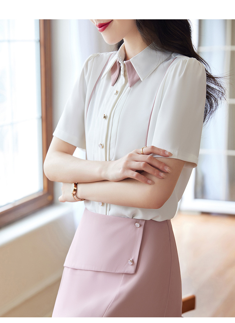 2024 여름 새로운 여성 의류 공급 도매 달콤한 디자인 인형 칼라 활 짧은 소매 셔츠 일본 여성스토어 가기