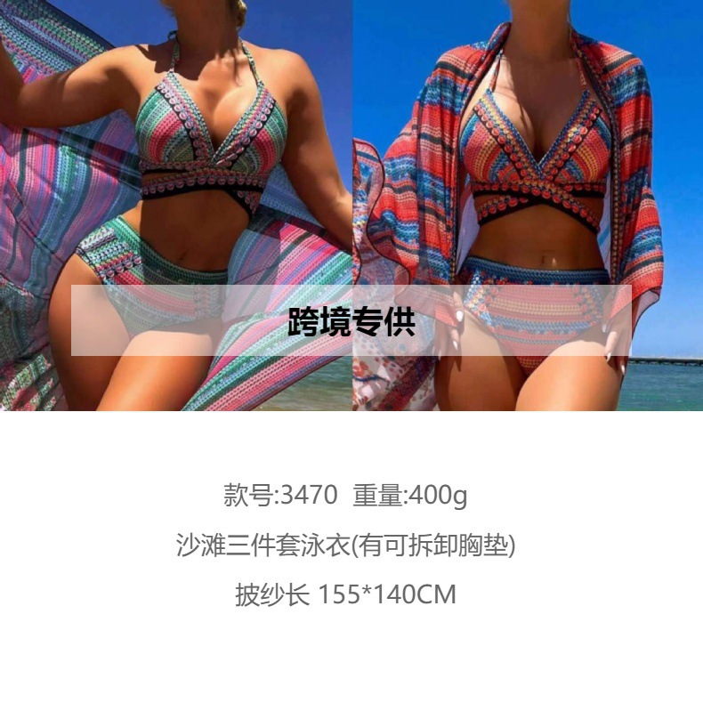 2026년 신상 3피스 수영복, 해변용 스판덱스, 유럽 및 미국 수출용 비키니, 크로스 스트랩 수영복, 하이웨이스트, 쉐이드스토어 가기