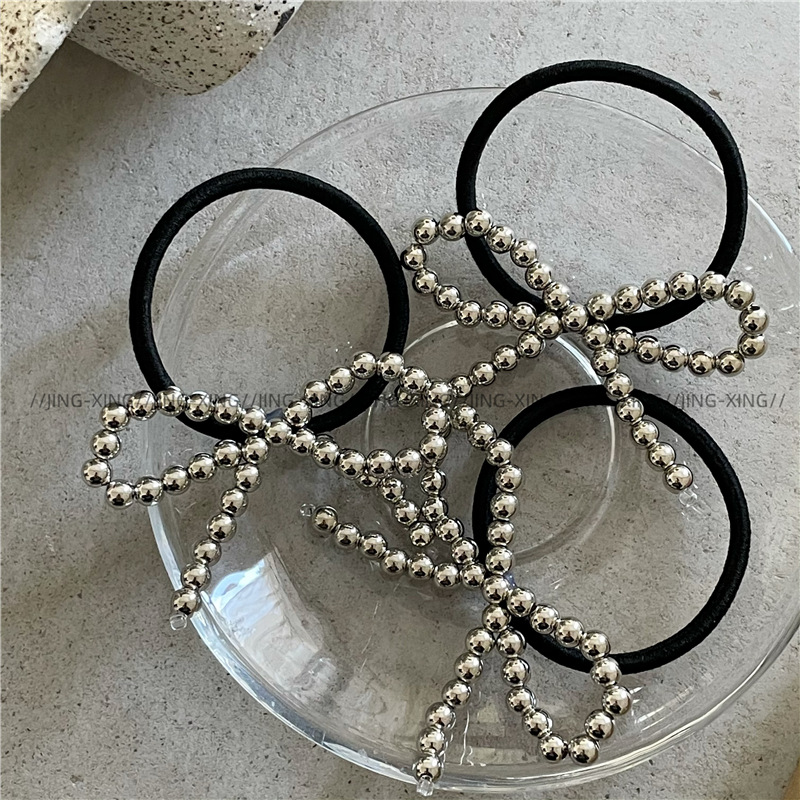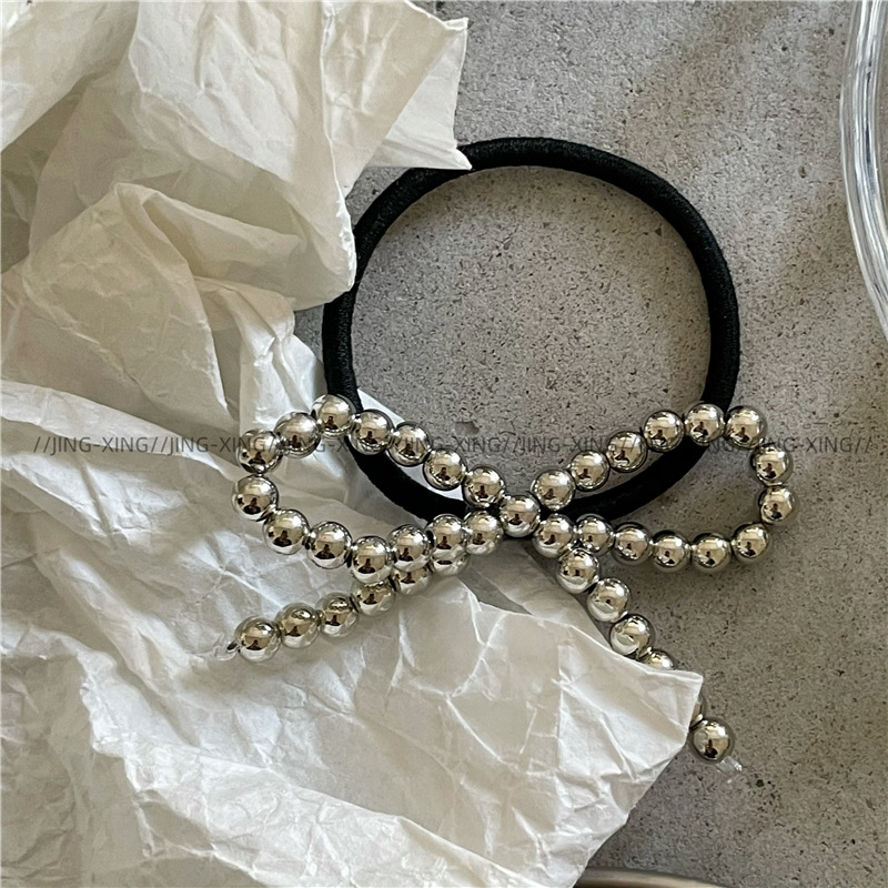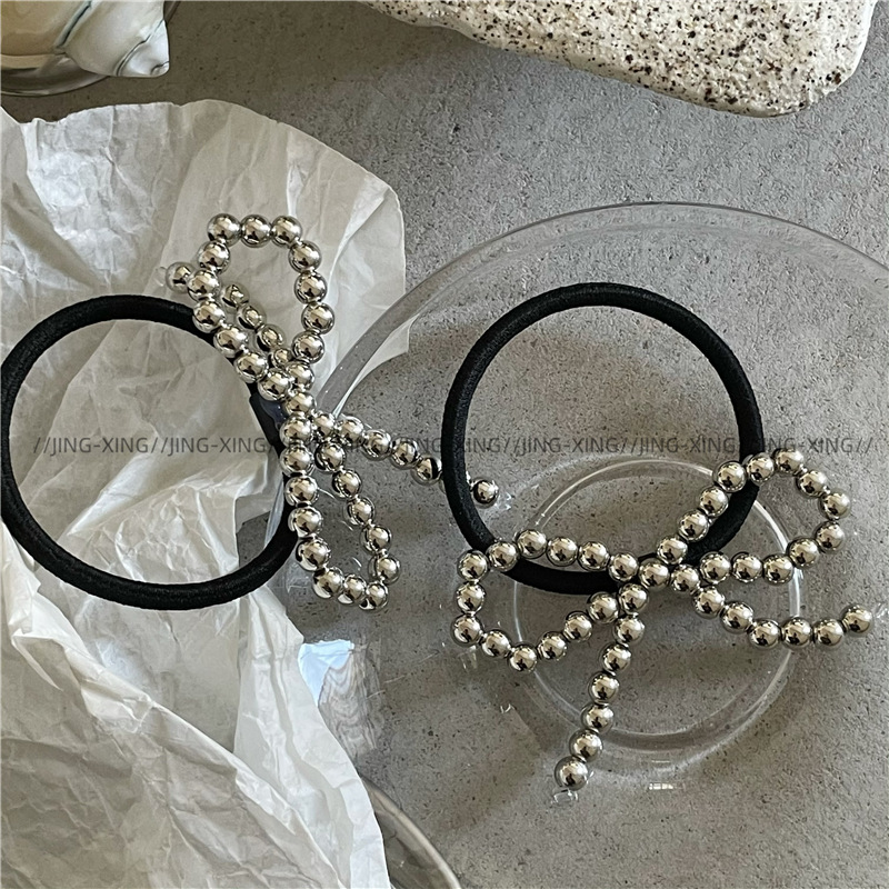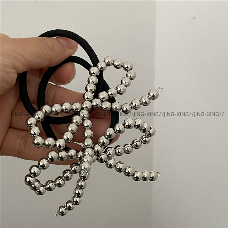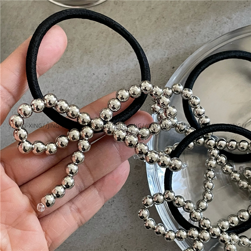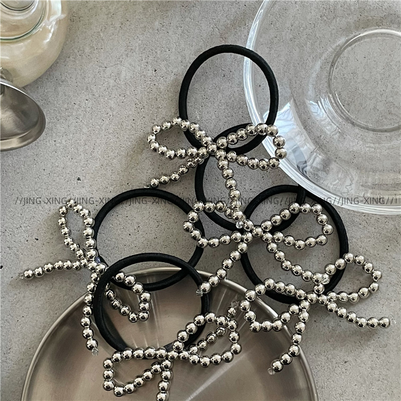 차가운 바람 실버 회색 모방 진주 나비 머리핀 사이드 클립 구슬 나비 머리 반지 말꼬리 고무 밴드 새로운