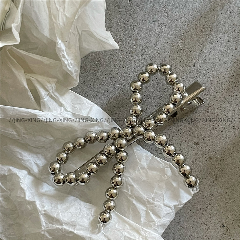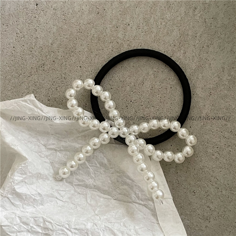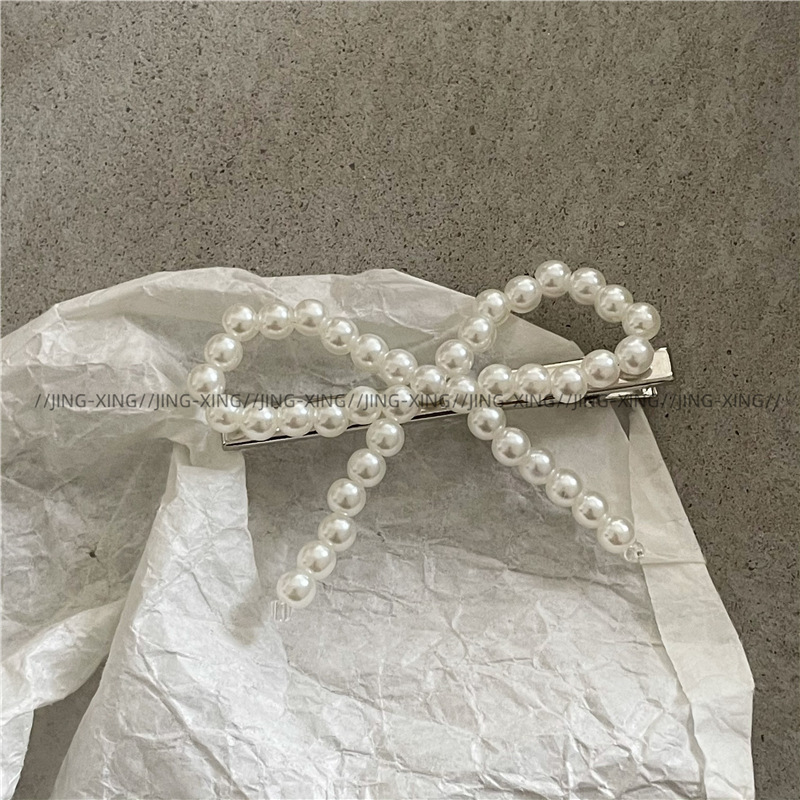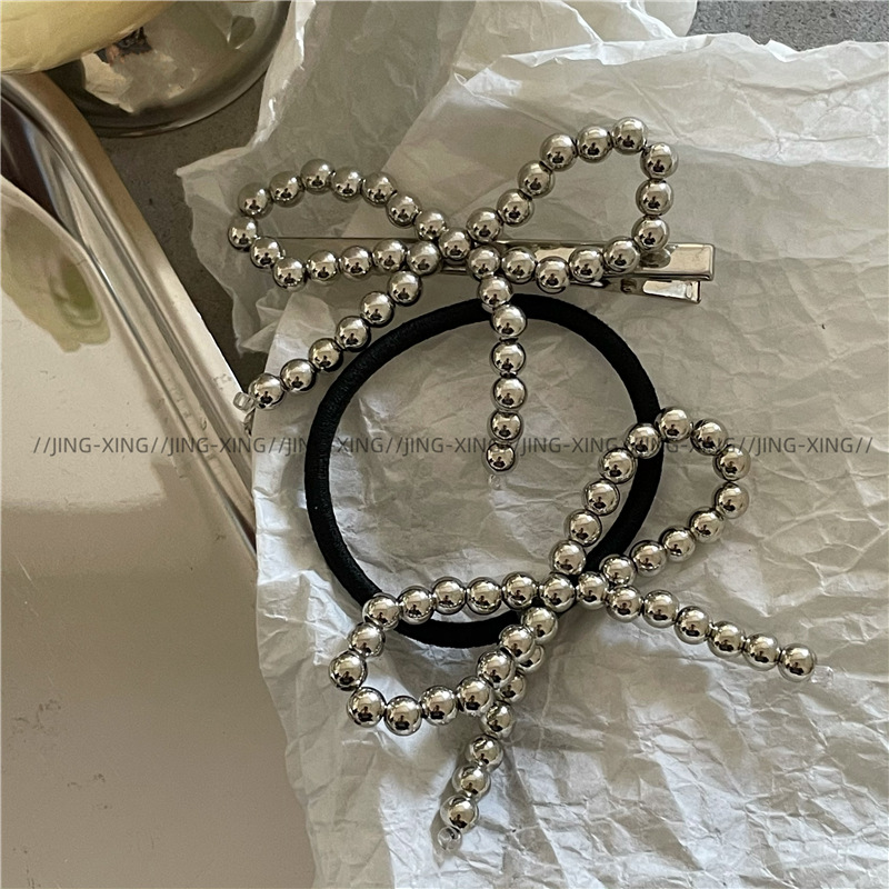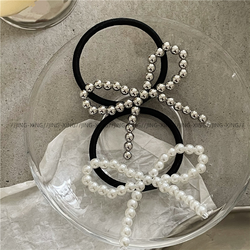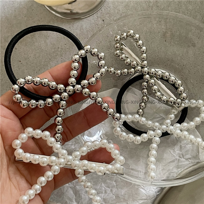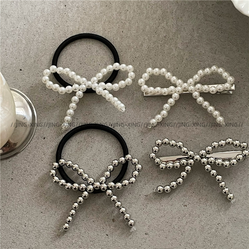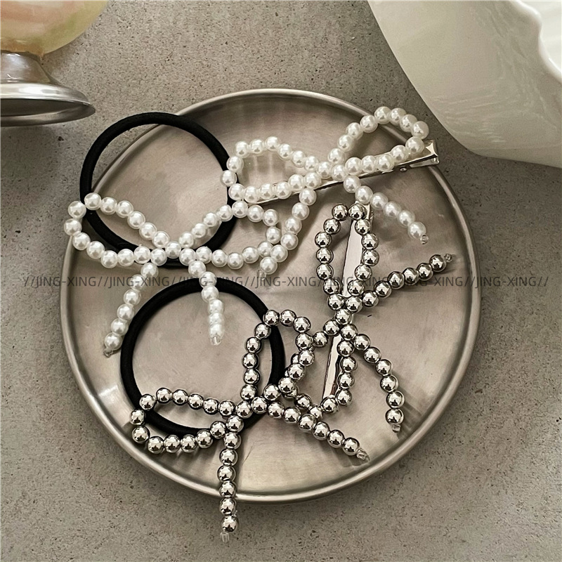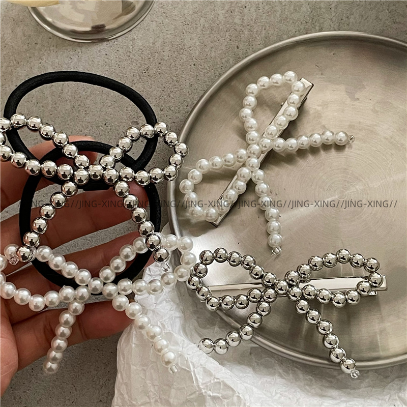 차가운 바람 실버 회색 모방 진주 나비 머리핀 사이드 클립 구슬 나비 머리 반지 말꼬리 고무 밴드 새로운스토어 가기