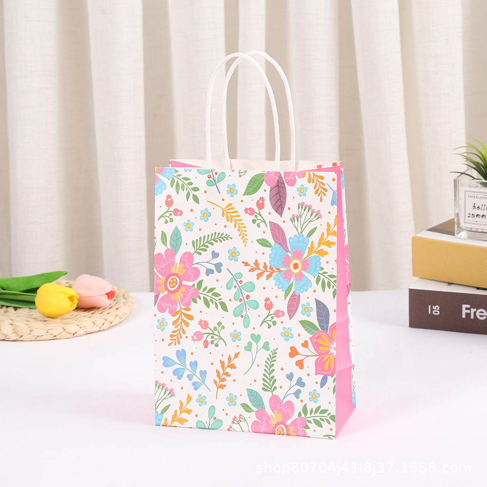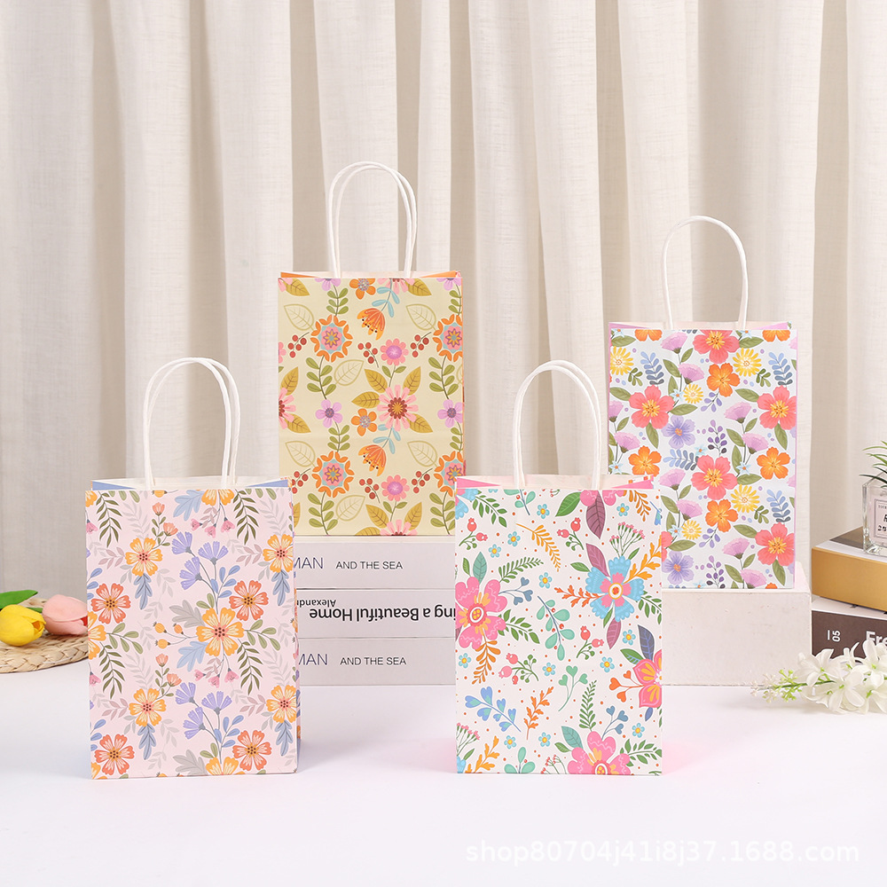 꽃 작은 신선한 목가적 인 선물 가방 흰색 크래프트 종이 가방 핸들 가방 절묘한 선물 가방 의류 액세서리 가방
