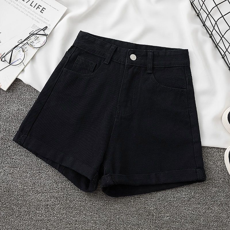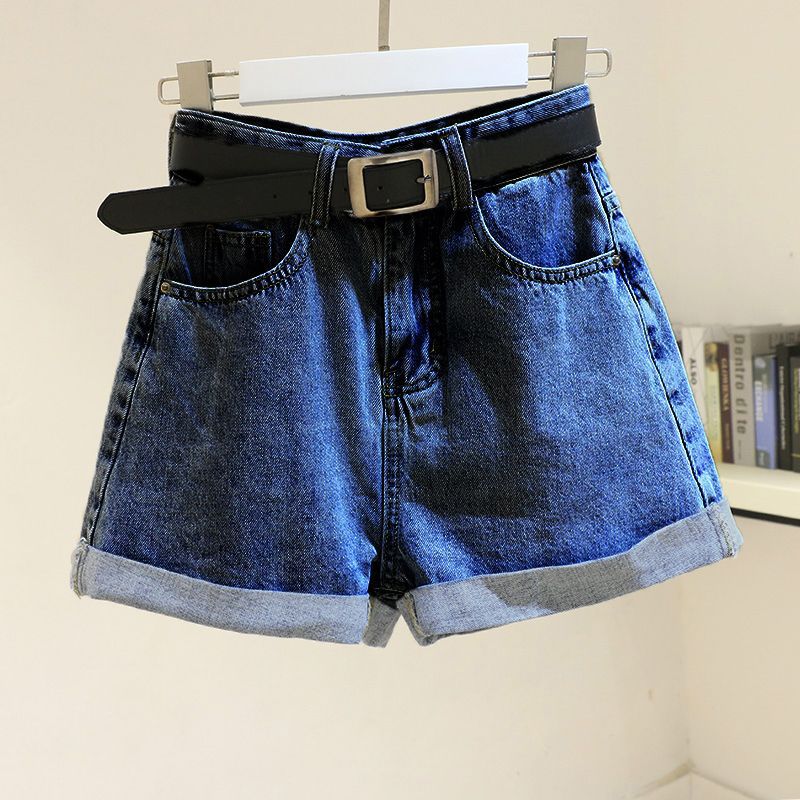 라이트 블루 컬 데님 반바지 여성 여름 2024 새로운 대형 루즈 슬리밍 넓은 다리 A 자형 핫 팬츠