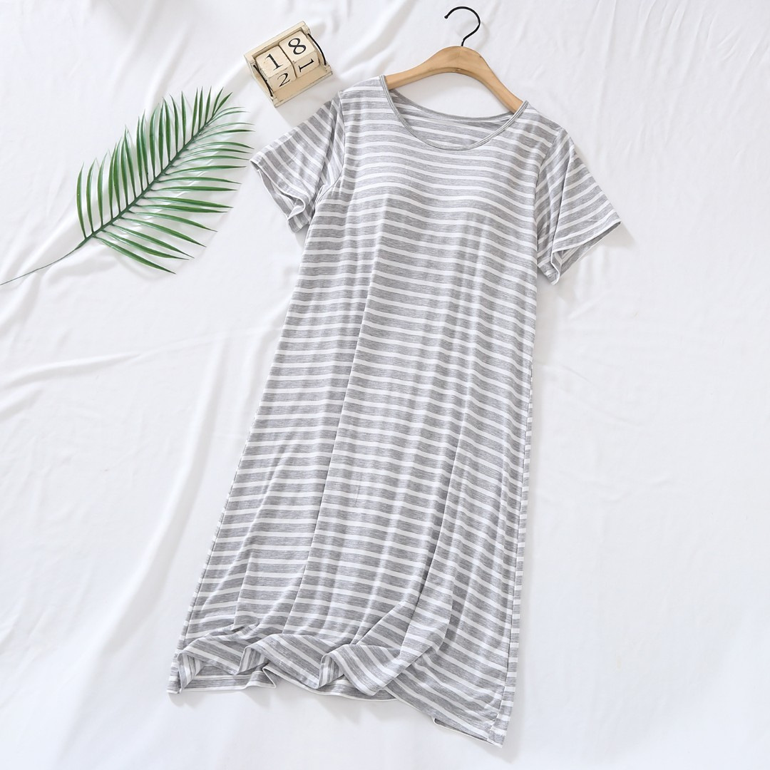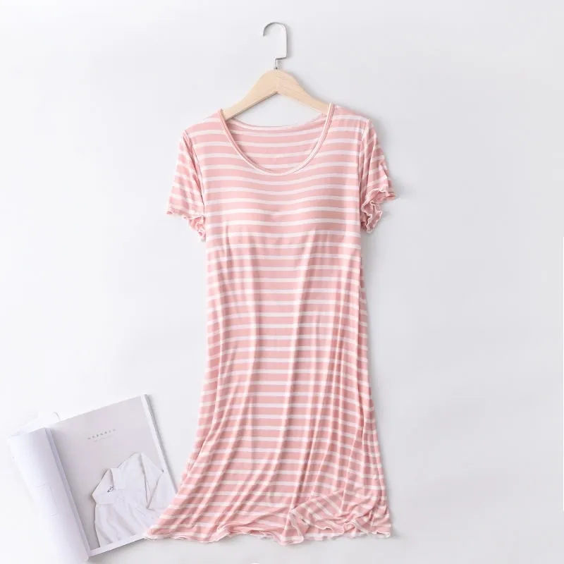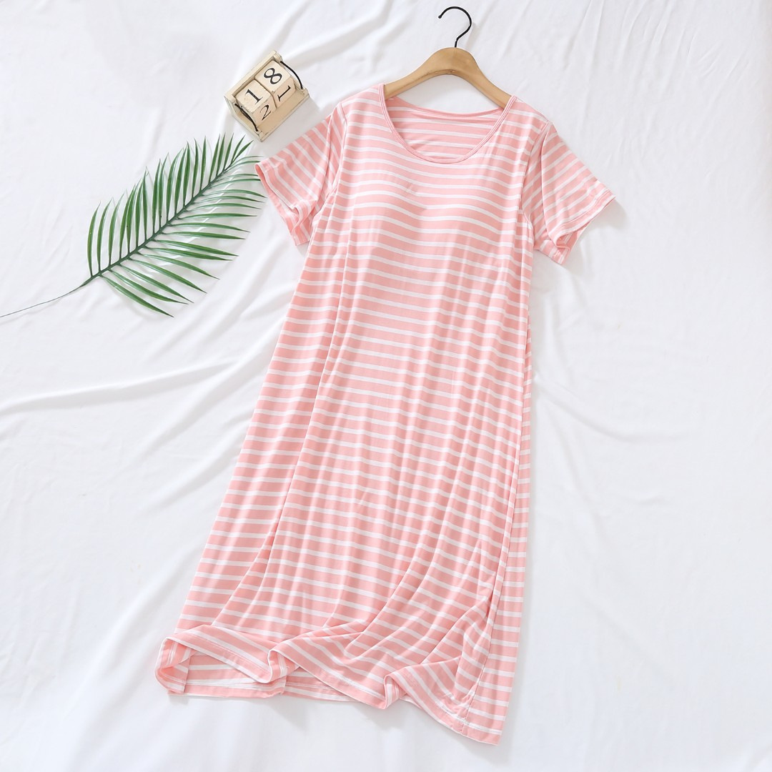 가슴 패드와 대형 모달 잠옷 여성용 반팔 여름 잠옷 줄무늬 간단한 야외 옷스토어 가기