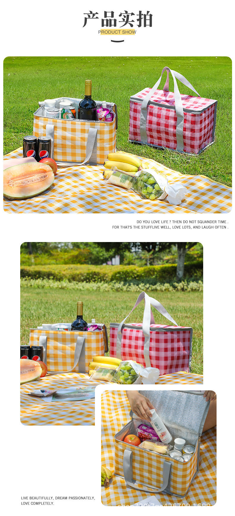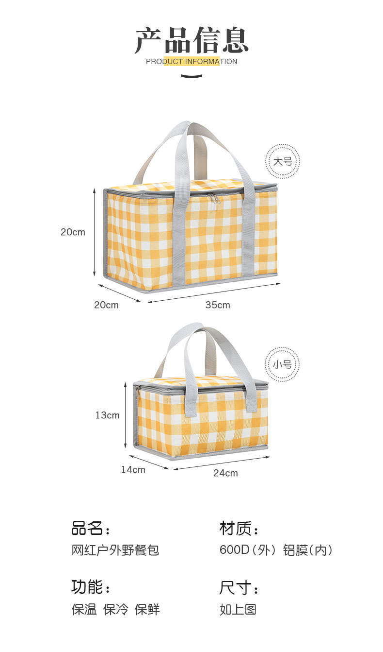 • 노란색 체크-대형 피크닉 가방 (20x20x35cm)