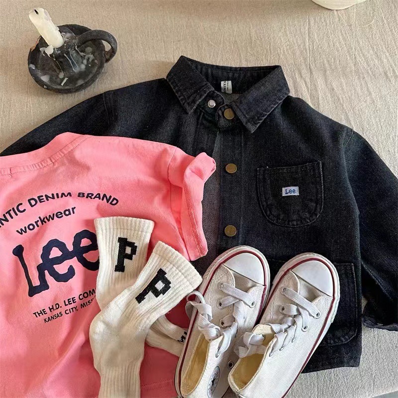 어린이 티셔츠 2025 봄과 여름 새 편지 인쇄 T 소년과 소녀 조수 기본 셔츠 아기 둥근 목 내부스토어 가기