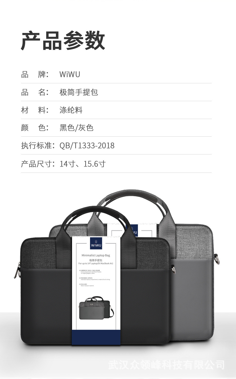 WiWU 14inch / 15inch 컴퓨터 가방 크로스바디 핸드백 전면 수납공간 분류 비즈니스 방수 노트북스토어 가기