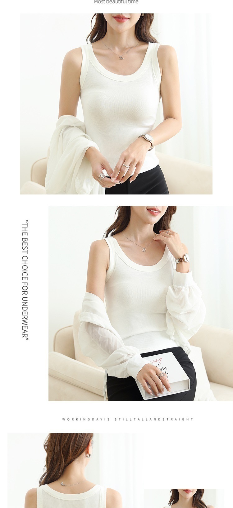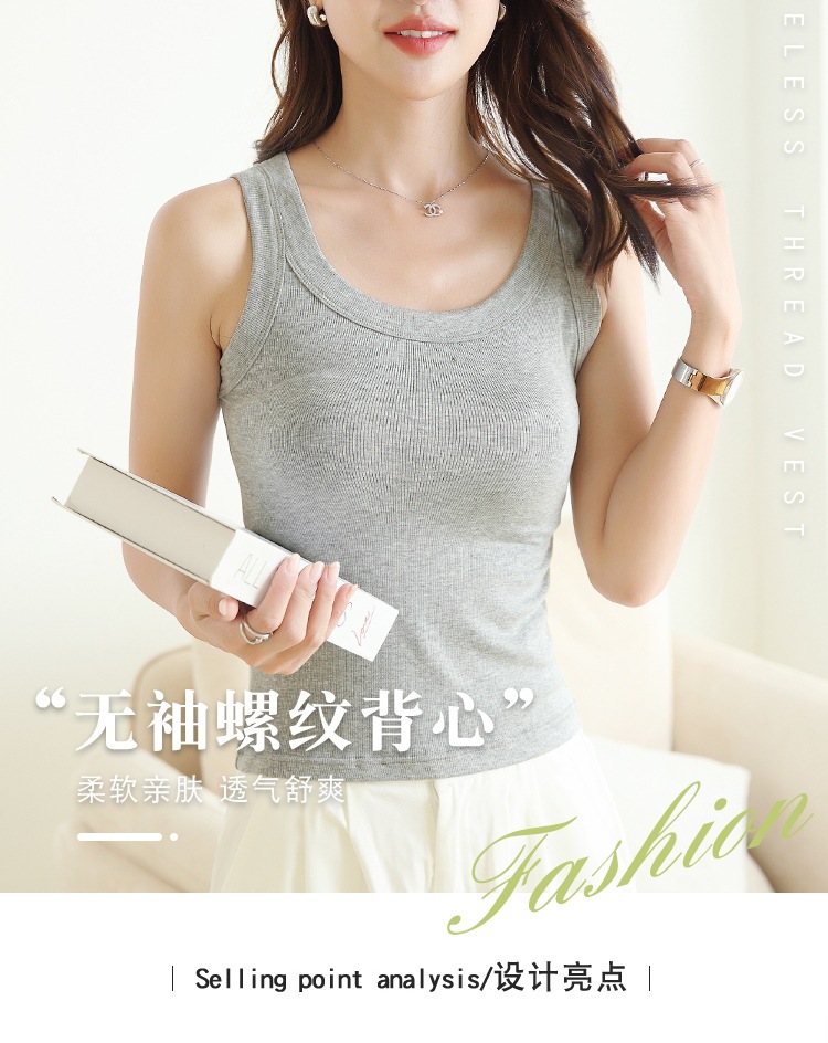 새로운 Threaded Camisole 여성의 봄 여름 가을 안티 러닝 라이트 내부 슬림 핏 외부 착용베이스 민소매 탑 얇은스토어 가기