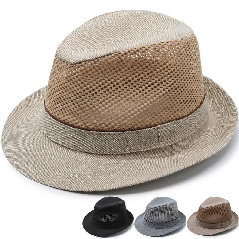 2024 봄과 여름 솔리드 컬러 파인 리넨 네트 토퍼 통기성 햇살 재즈 모자 선 스크린 태양 모자 영국 남자 모자