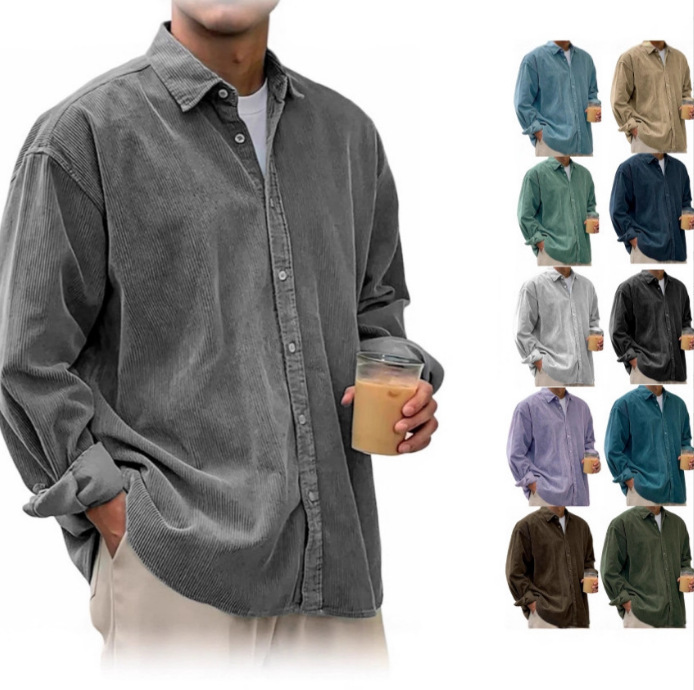 크로스보더 신상 코듀로이 셔츠 남성 긴팔 트렌디 브랜드 캐주얼 루즈핏 남성 가을 겨울 두꺼운 셔츠 남성 자켓