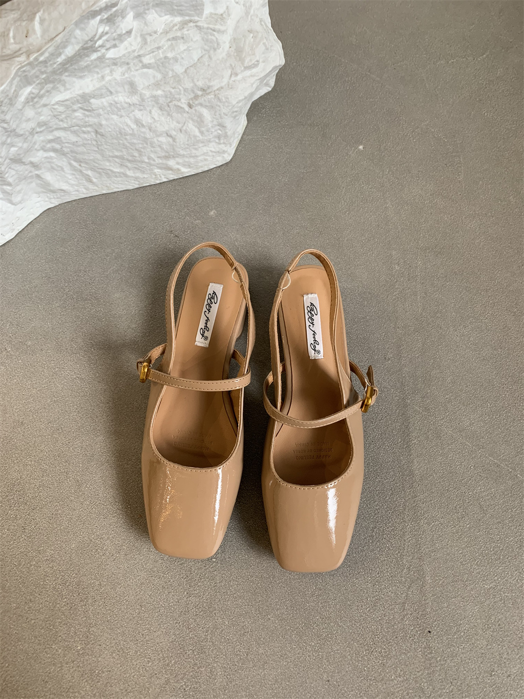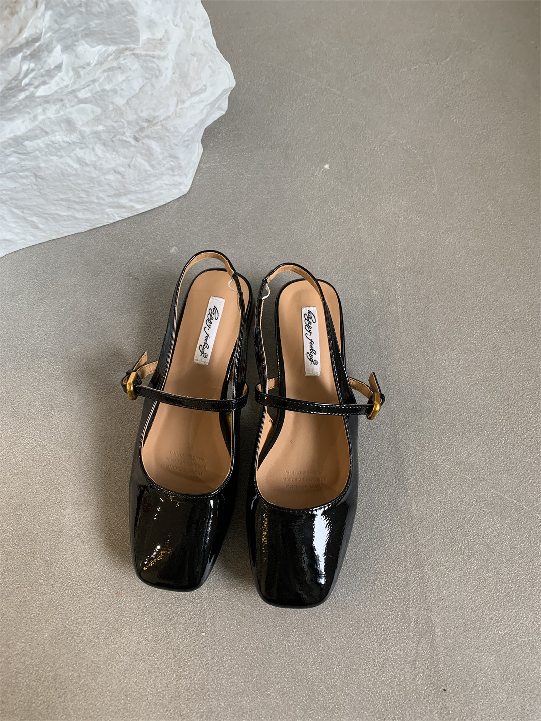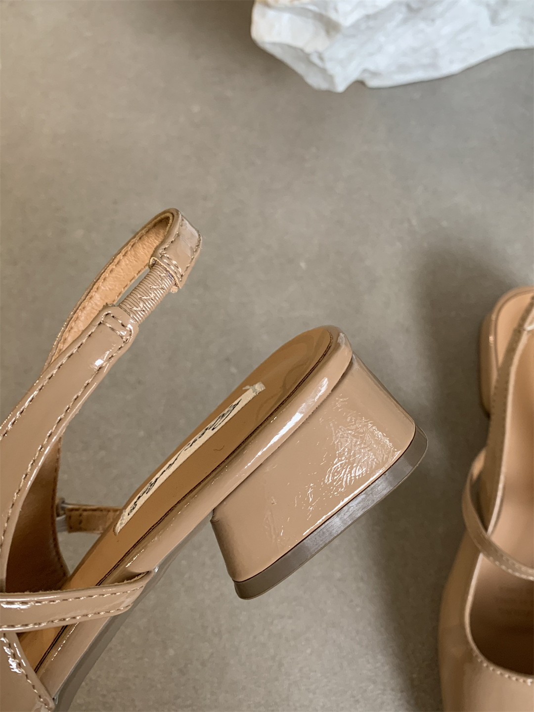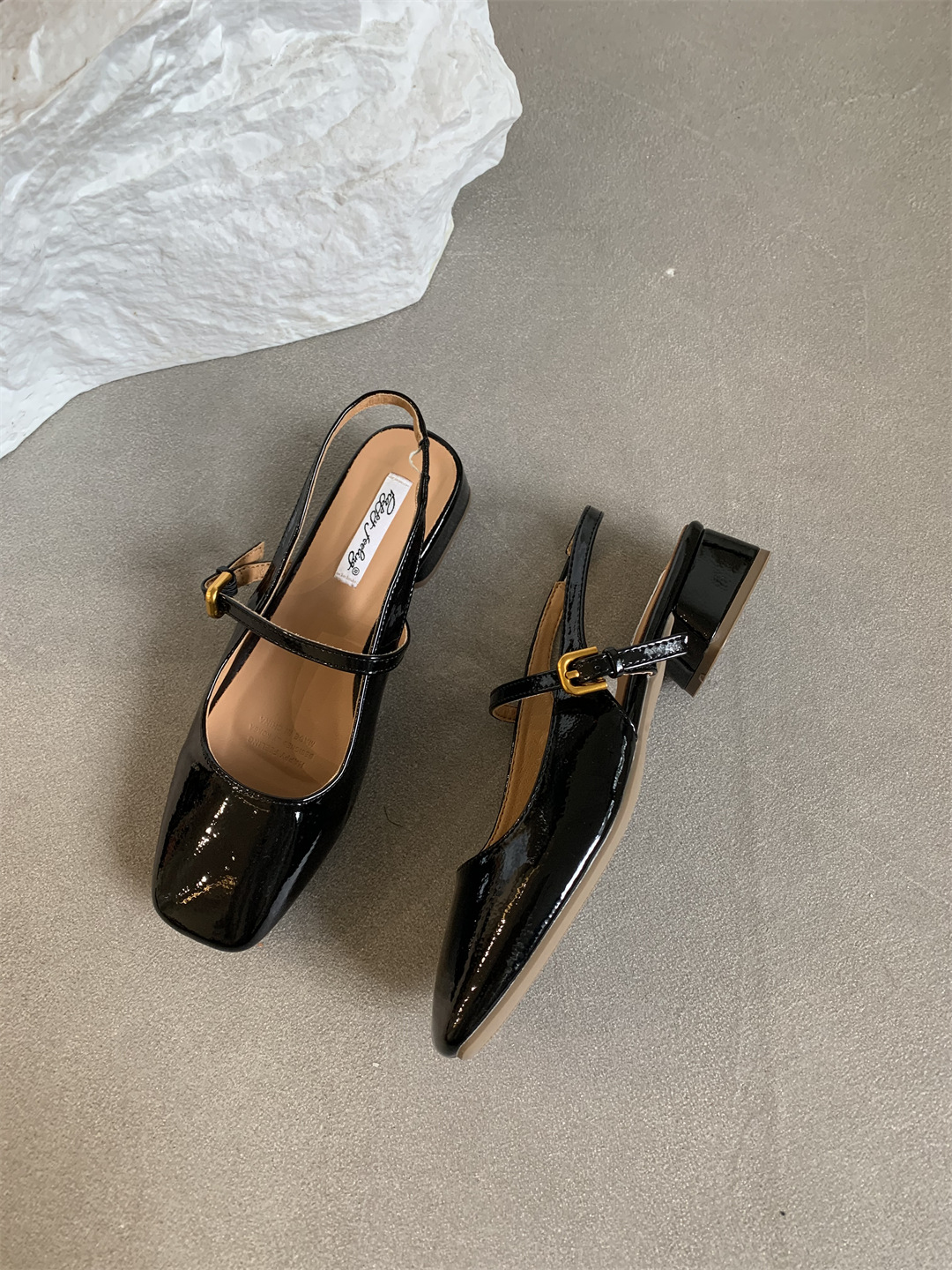 프랑스 늦은 저녁 스타일 두꺼운 뒤꿈치 광장 발가락 다시 빈 신발 여성의 2024 봄 새 원피스 미드 힐 발가락 샌들