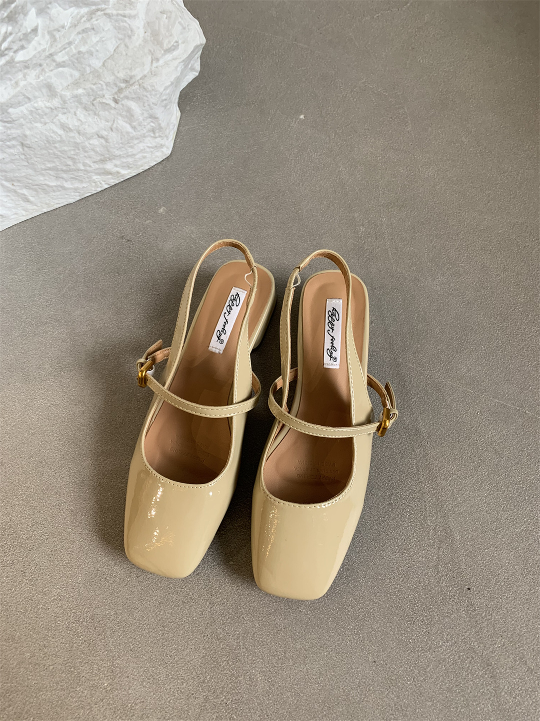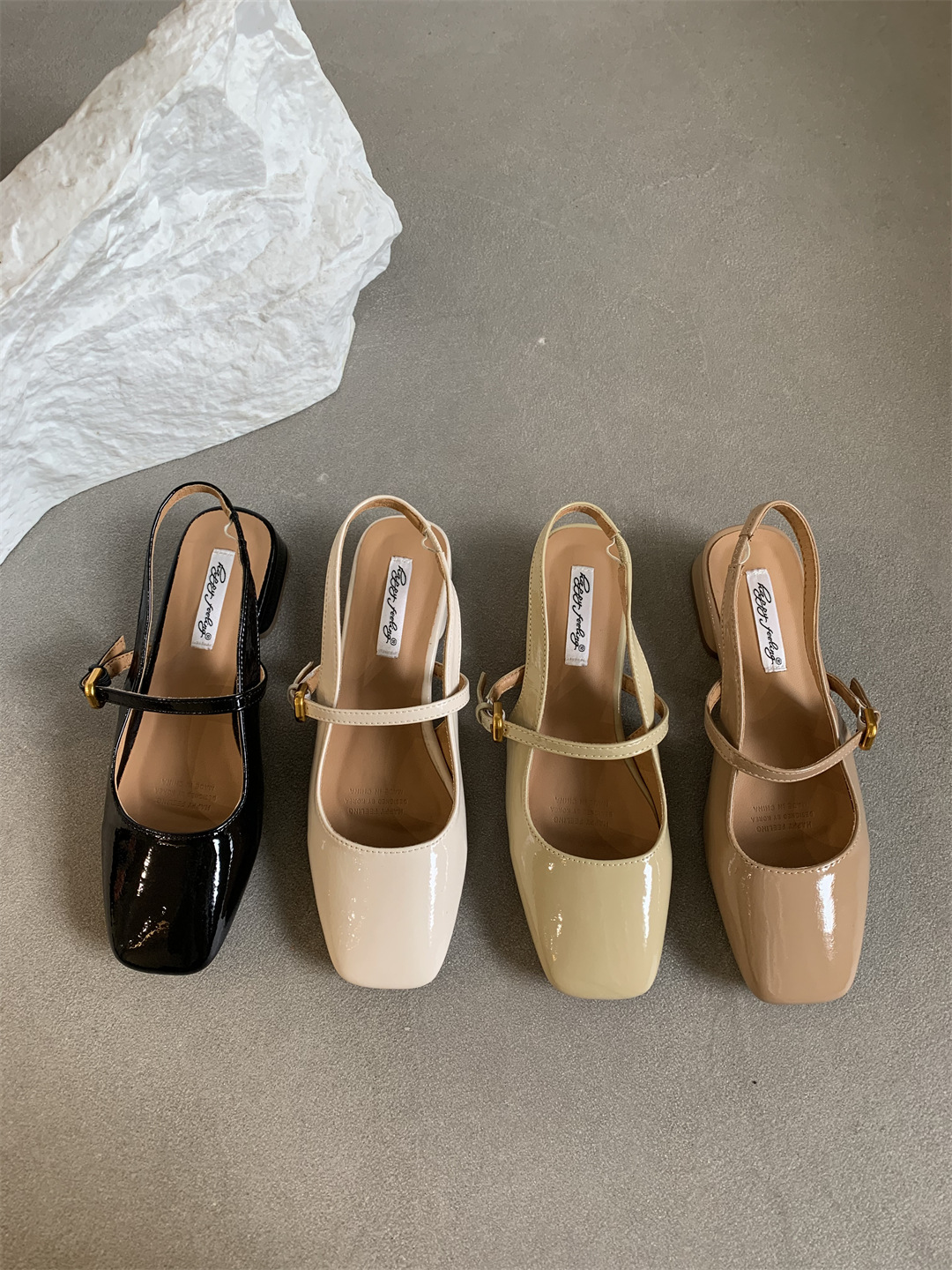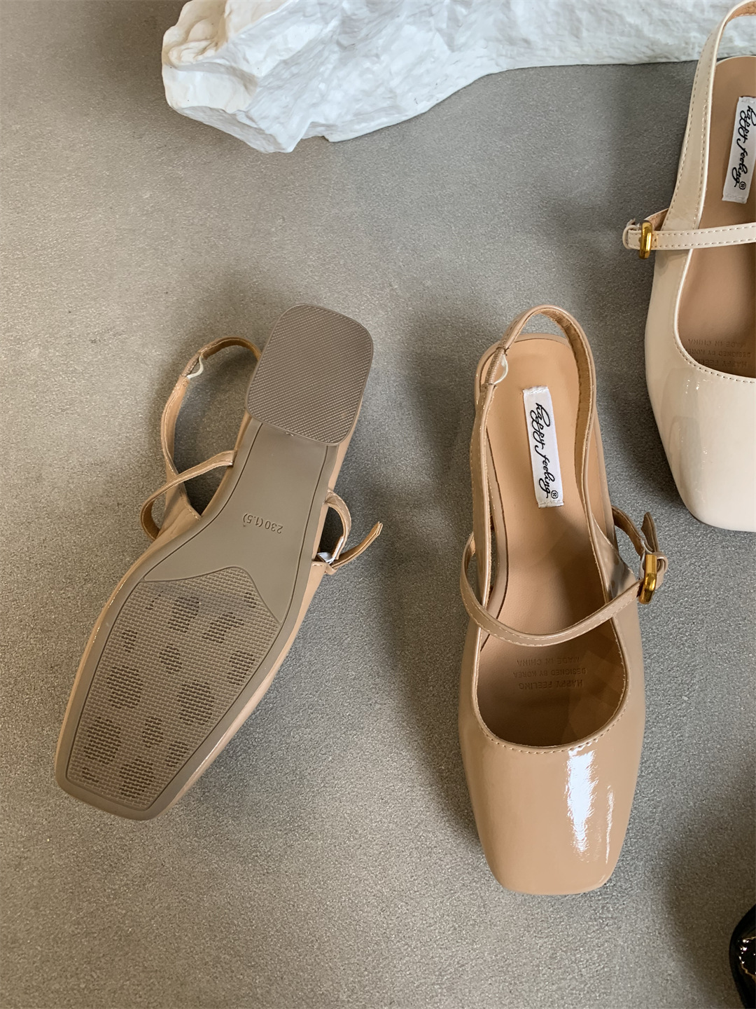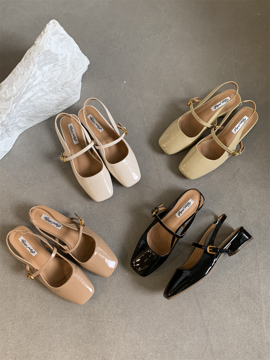 프랑스 늦은 저녁 스타일 두꺼운 뒤꿈치 광장 발가락 다시 빈 신발 여성의 2024 봄 새 원피스 미드 힐 발가락 샌들스토어 가기