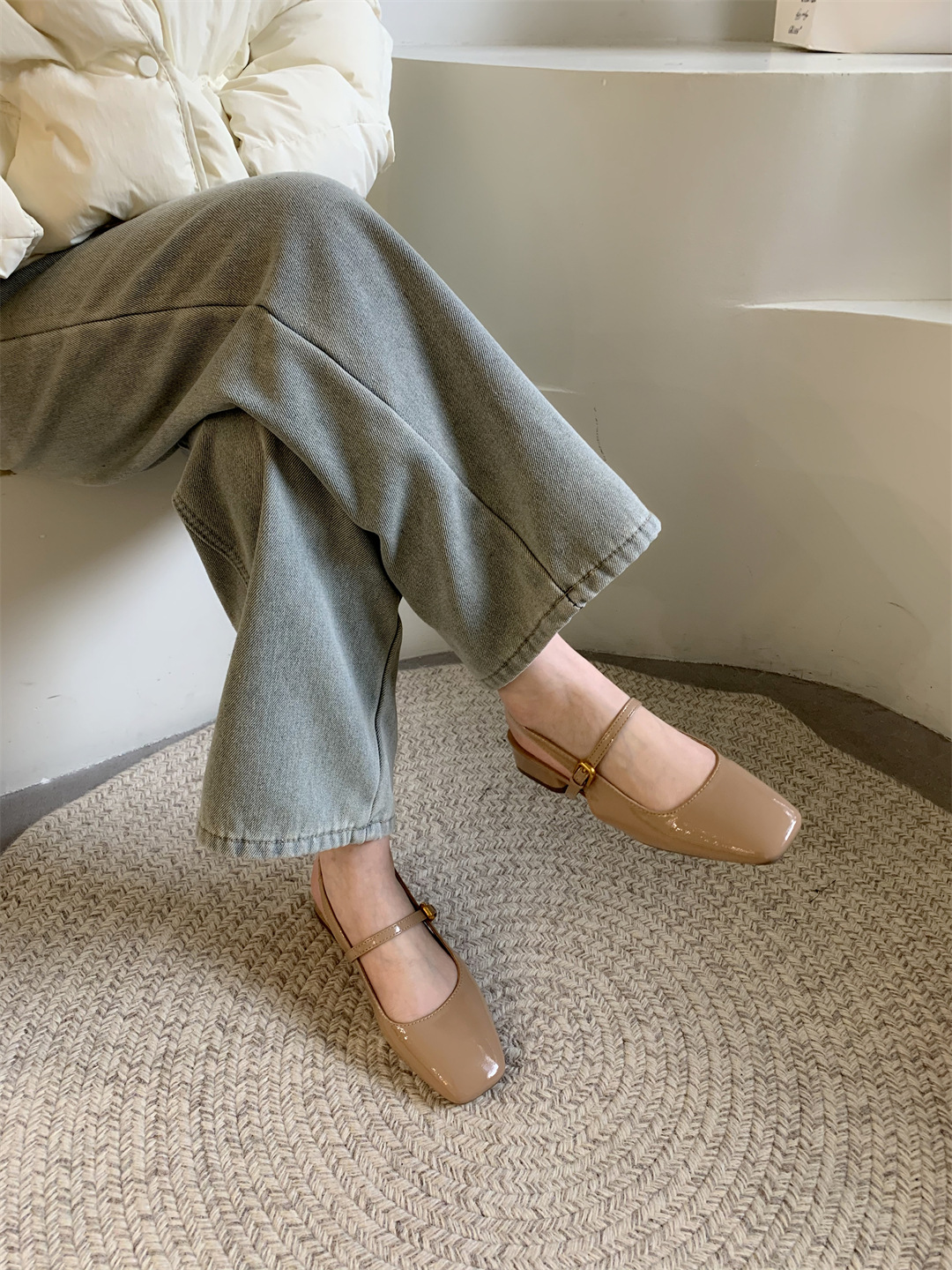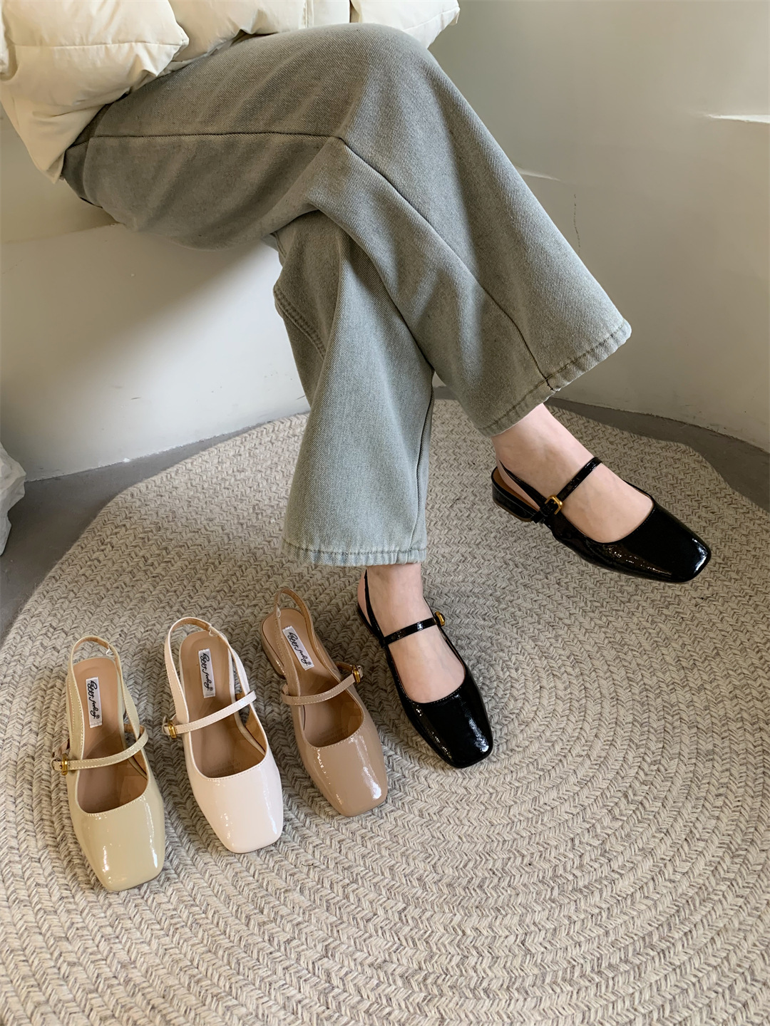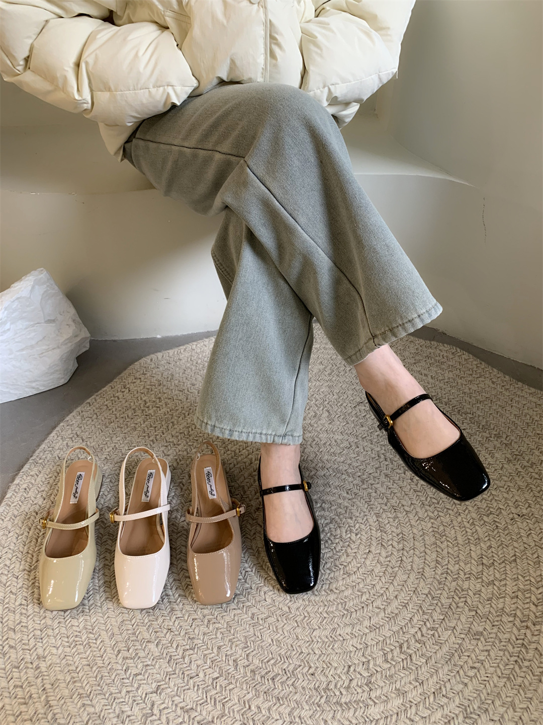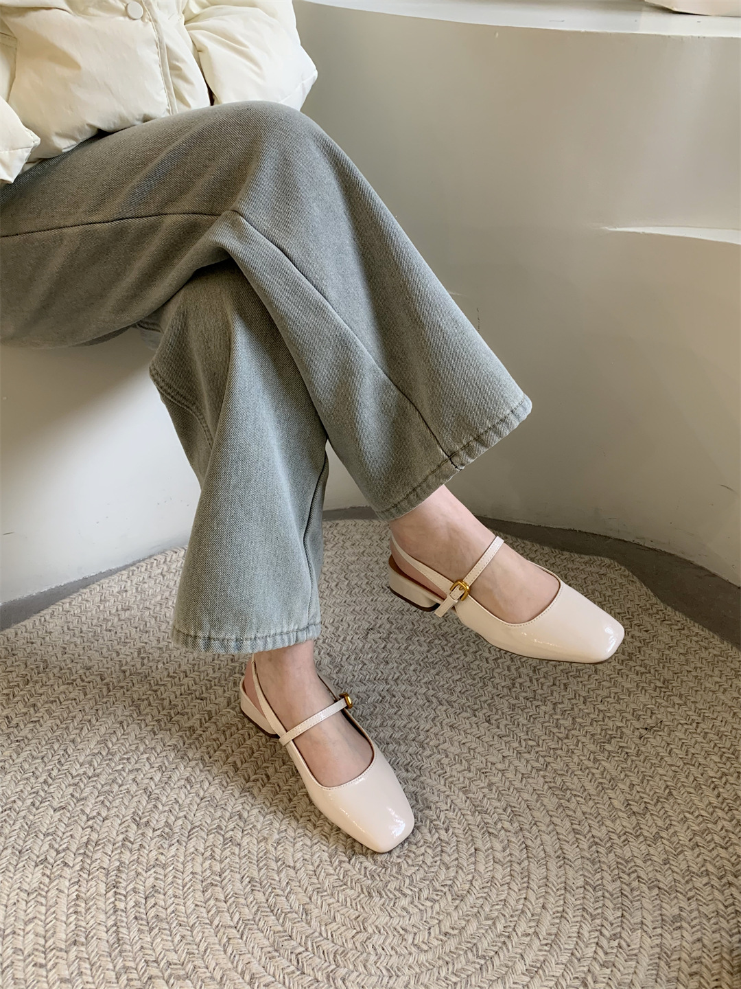 프랑스 늦은 저녁 스타일 두꺼운 뒤꿈치 광장 발가락 다시 빈 신발 여성의 2024 봄 새 원피스 미드 힐 발가락 샌들스토어 가기