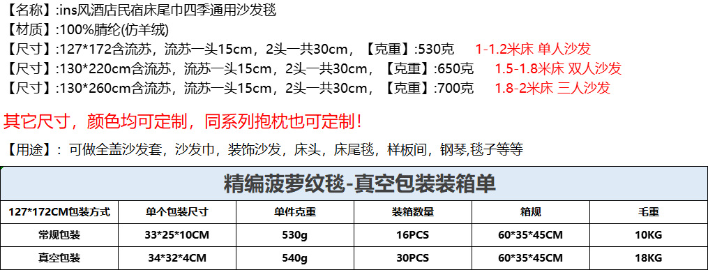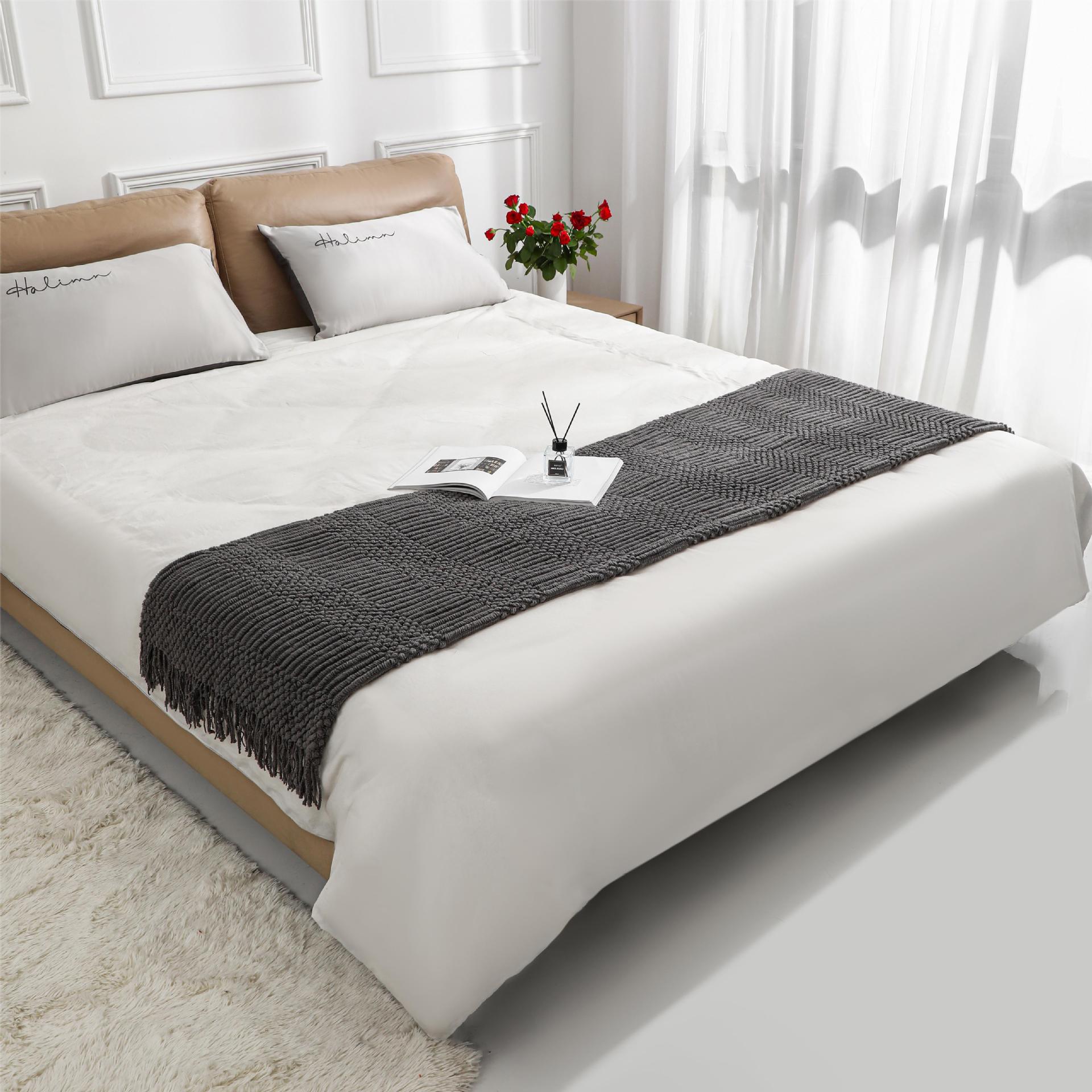 B&B 호텔 라이트 럭셔리 프린지 침대 끝 담요 소파 담요 피크닉 담요 호텔 침대 커버 가정 장식 담요