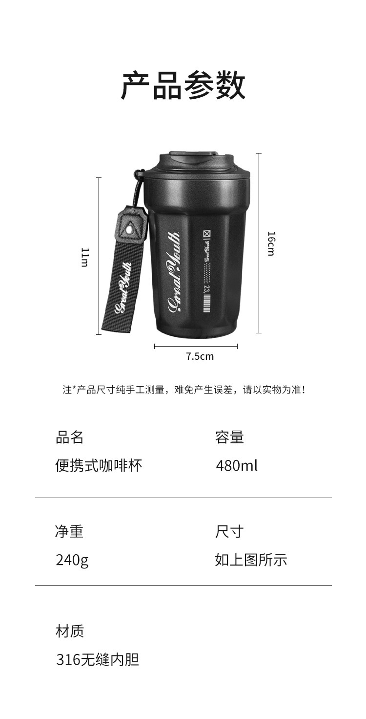316 스테인리스 스틸 커피 보온병 맞춤형 로고 휴대용 물컵 남녀 학생 대용량 비즈니스 휴대용 컵